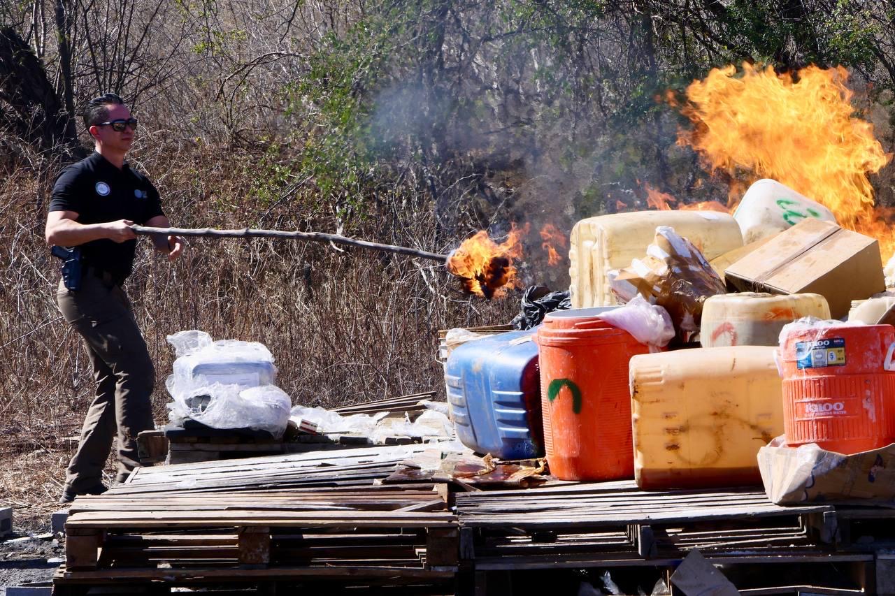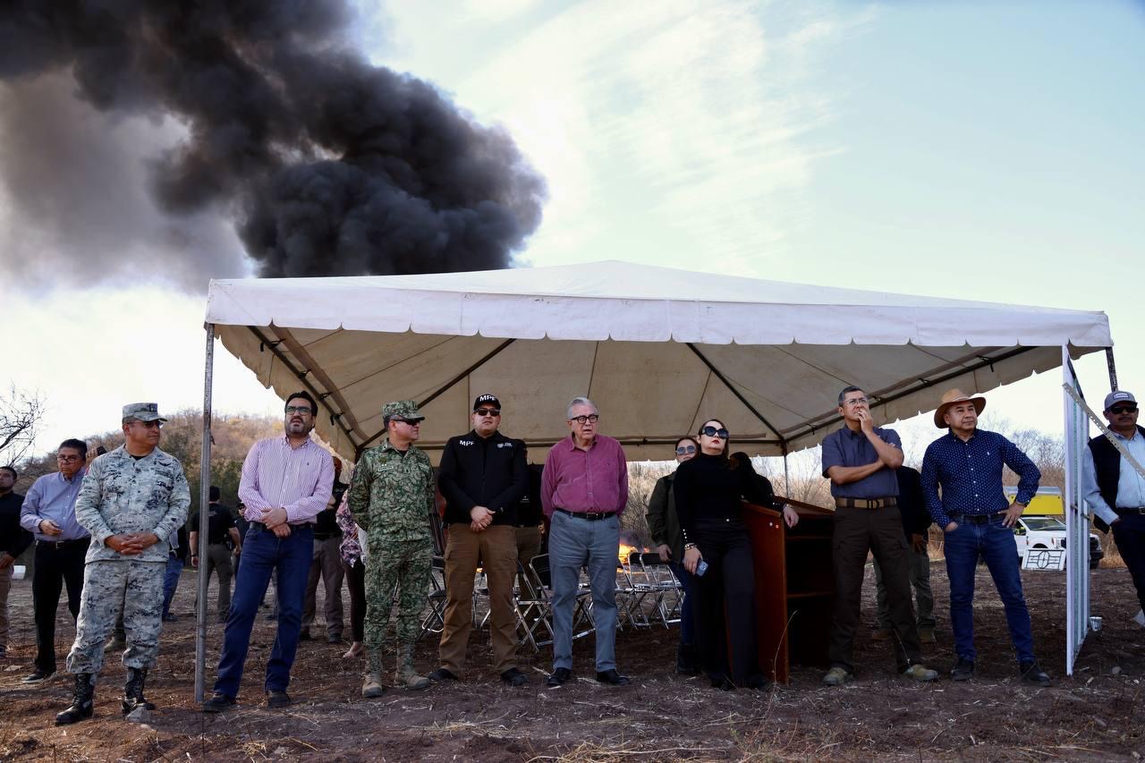 La ceremonia de incineración y destrucción estuvo a cargo de la Delegación de Fiscalía General de la República en Sinaloa, y tuvo lugar en un paraje a las afueras de Culiacán, en el ejido Los Becos, donde se procedió a la quema de 3.644 toneladas de metanfetamina, conocida como cristal y 971 litros de dicho psicotrópico; 260 kilogramos de cocaína, 262 kilos de mariguana y 6 kilos de plantas de este estupefaciente; 15 kilogramos de heroína y 10 kilos de plantas de amapola, además de más de 200 litros de diversas sustancias para la elaboración de droga sintética.