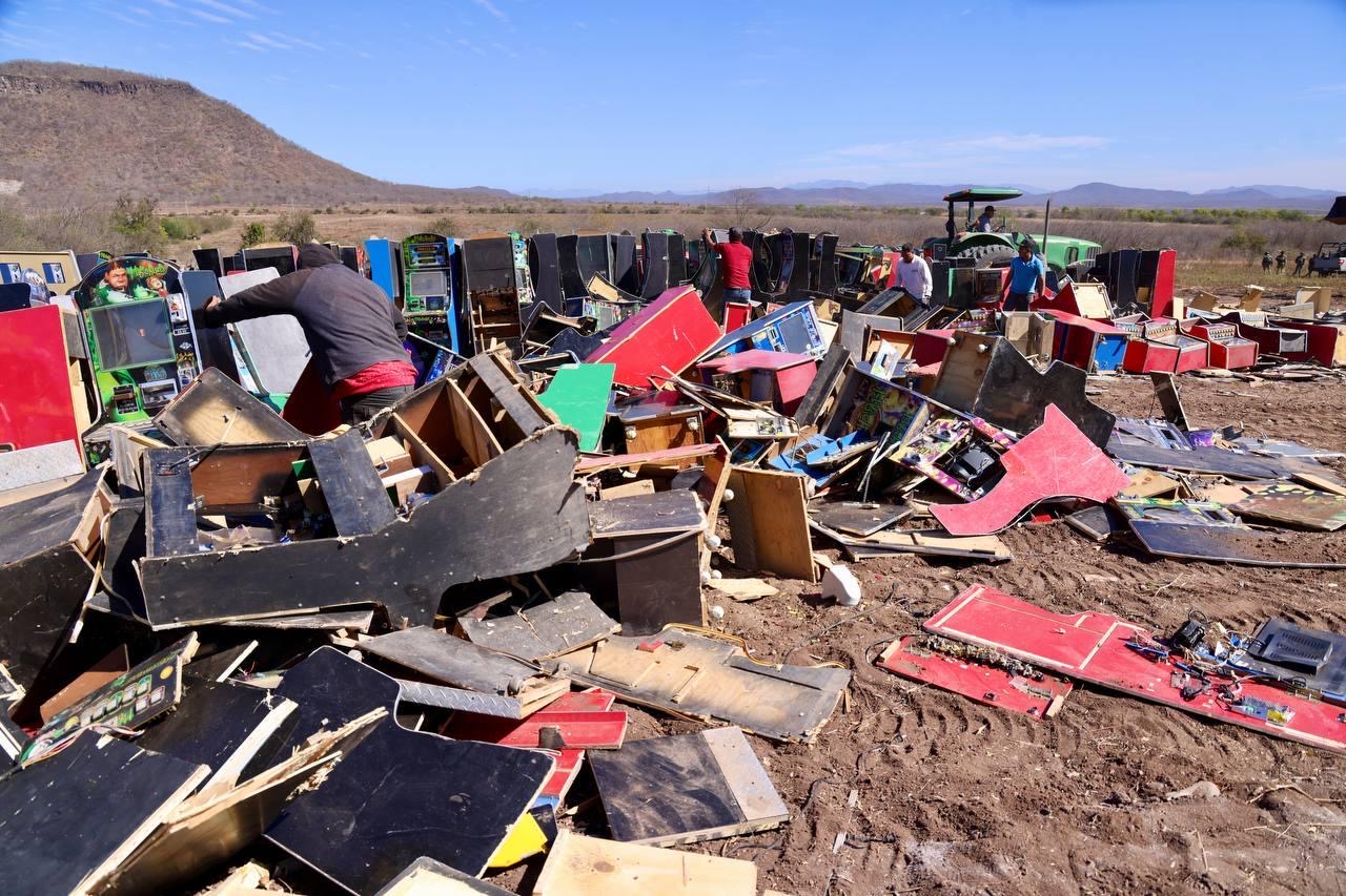 Además de la droga, se destruyeron 796 máquinas tragamonedas, y 179 objetos del delito, tales como inhibidores o bloqueadores de señal de telecomunicaciones, chalecos tácticos y antibalas, artefactos conocidos como “tumbadrones”, placas balísticas y diversa indumentaria táctica.