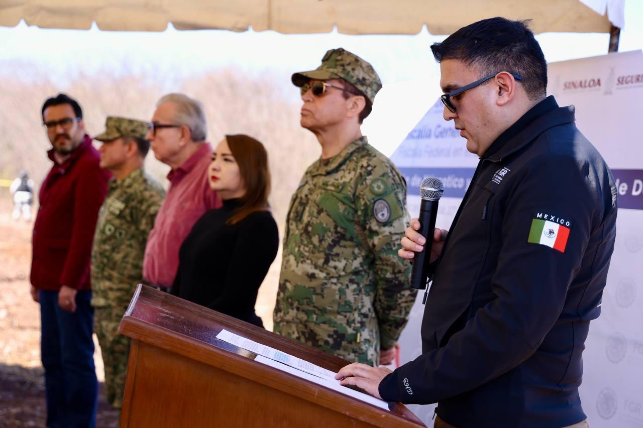 Acompañaron al gobernador Rocha en esta ceremonia, que dirigió el delegado de la FGR en Sinaloa, Gonzalo Hernández Durazo, el comandante de la Novena Zona Militar, general de Brigada, Porfirio Fuentes Vélez; el jefe de Estado Mayor de la Cuarta Región Naval, vicealmirante José Chapa Téllez, el secretario de Seguridad Pública, general Oscar Rentería Schazarino; la fiscal general del Estado, Claudia Zulema Sánchez Kondo; y el presidente municipal de Culiacán, Juan de Dios Gámez Mendívil.