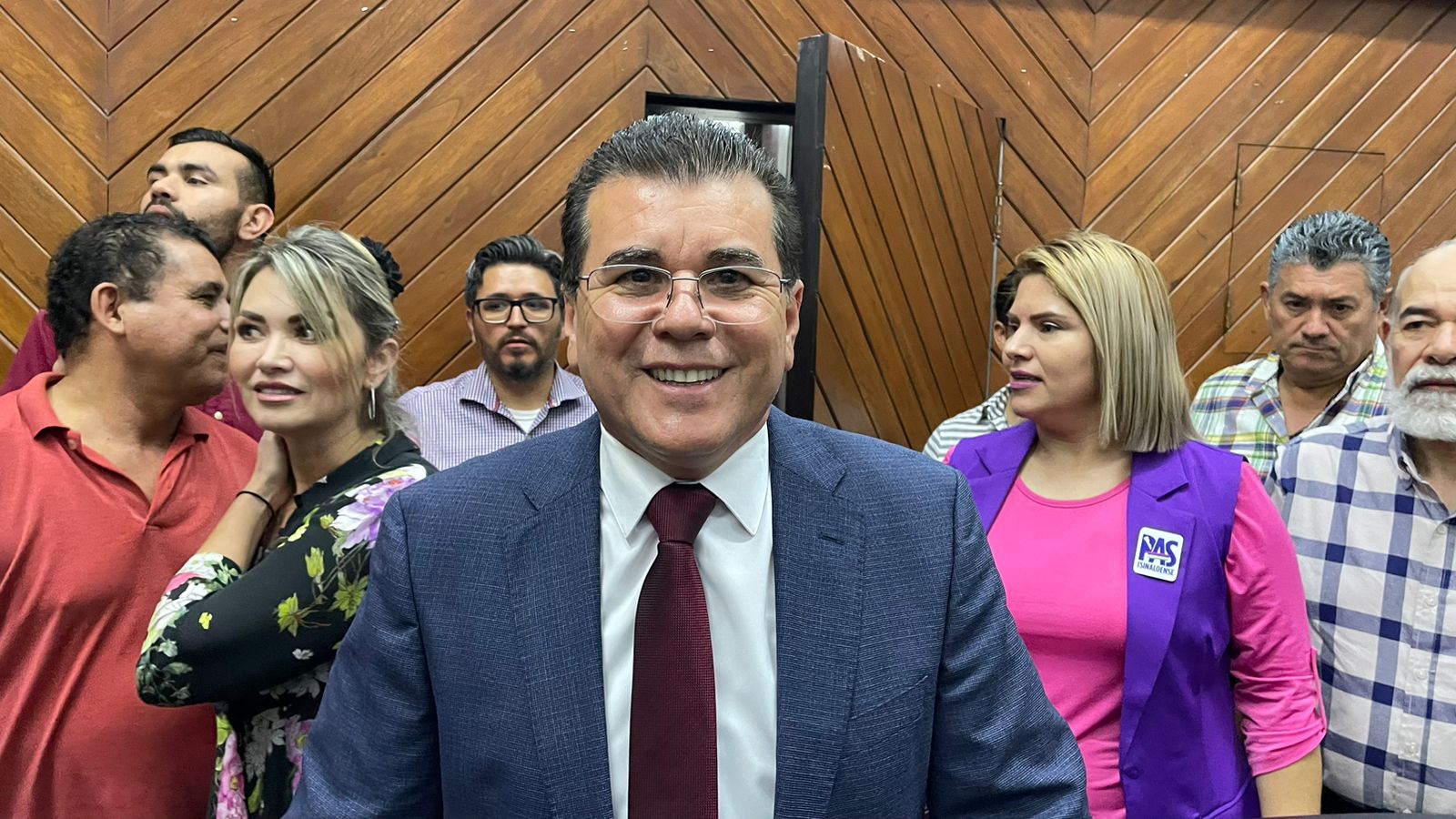 Los diputados Celia Jáuregui, Rita Fierro, Juan Carlos Patrón, Guadalupe Cazares, Viridiana Camacho Millan, Rosario Osuna, Verónica Batiz y José Antonio Ríos Rojo, además de los regidores municipales y funcionarios, acompañaron en esta primera rueda de prensa a Edgar Augusto González Zatarain.