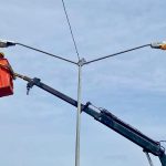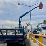 Mazatlán, Sinaloa, 4 de abril de 2023.- Con la intención de mejorar el servicio de alumbrado público para brindar seguridad a automovilistas y peatones, así como una mejor imagen del puerto, la dirección de Servicios Públicos trabaja en los accesos a la ciudad.