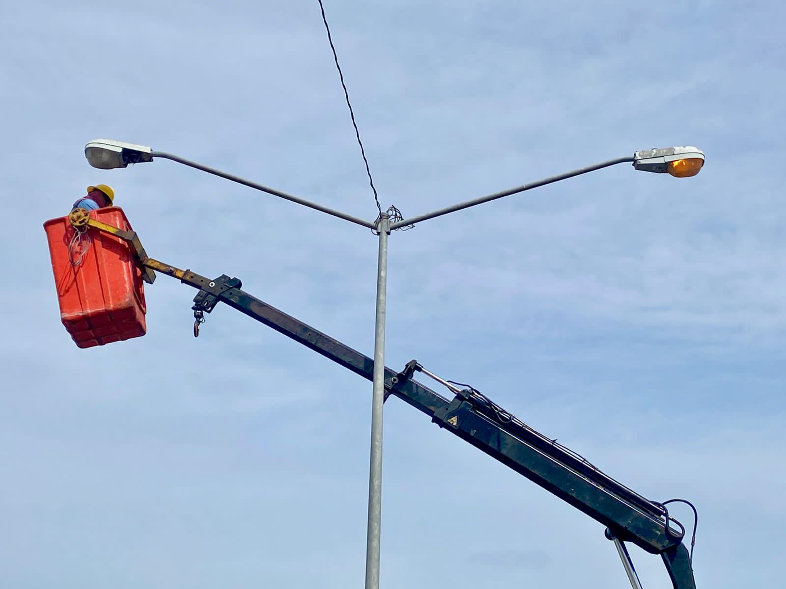 Mazatlán, Sinaloa, 4 de abril de 2023.- Con la intención de mejorar el servicio de alumbrado público para brindar seguridad a automovilistas y peatones, así como una mejor imagen del puerto, la dirección de Servicios Públicos trabaja en los accesos a la ciudad.