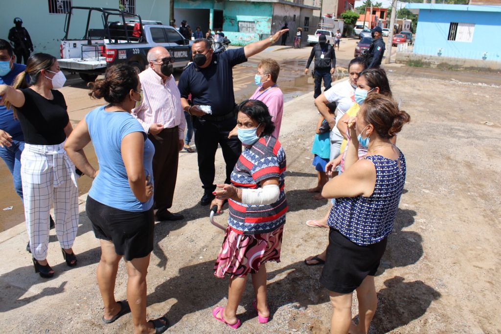 Acompañado por el Secretario de Seguridad Pública, Comisario Juan Ramón Alfaro Gaxiola, en un ejercicio ciudadano, el munícipe escuchó de manera directa a amas de casa, niños y señores con discapacidad, quienes les narraron los problemas a los que ahora se enfrentan una vez que pasó el mal tiempo, y giró instrucciones a diferentes dependencias municipales para que atendieran en lo inmediato la problemática detectada.