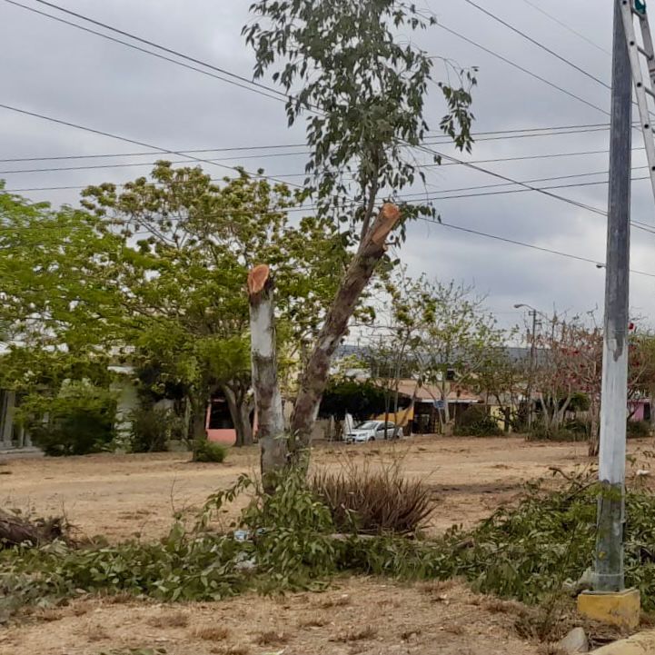 A temprana hora llegó una cuadrilla de personal de la dependencia y apoyados con una grúa efectuaron la poda de varios árboles de gran dimensión, además realizarán la rehabilitación del área verde que se mostraba deteriorada.