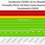 En el otro termómetro, el de Casos Nuevos Diarios, promedio móvil de 10 días, Mazatlán subió de 13 a 14 grados. Cabe destacar que desde el pasado 21 de octubre, este termómetro se ha mantenido con una incidencia estable entre los 12 y los 14 grados covid.