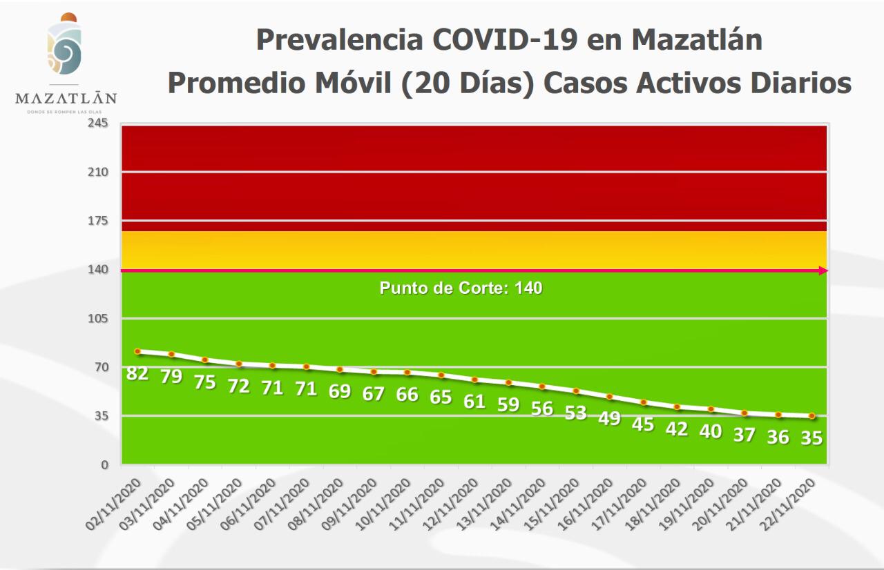 Mazatlán.- A pesar de que el municipio registró hasta la noche de ayer 10 nuevos casos de Covid-19, se mantiene con 35 pacientes activos, según el informe presentado por la Secretaría de Salud de Gobierno del Estado, y continúa en Semáforo Verde.
