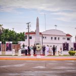 El Octavo Batallón de Infantería emitió una salva de fusilería, para que momentos después, las diferentes autoridades colocaran al pie del obelisco una ofrenda floral y una guardia de honor.