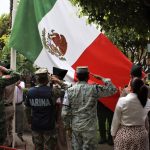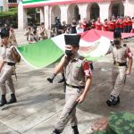 La escolta y banda de guerra del Colegio Militarizado Nuevo México fueron los encargados de encabezar los honores a la enseña nacional.