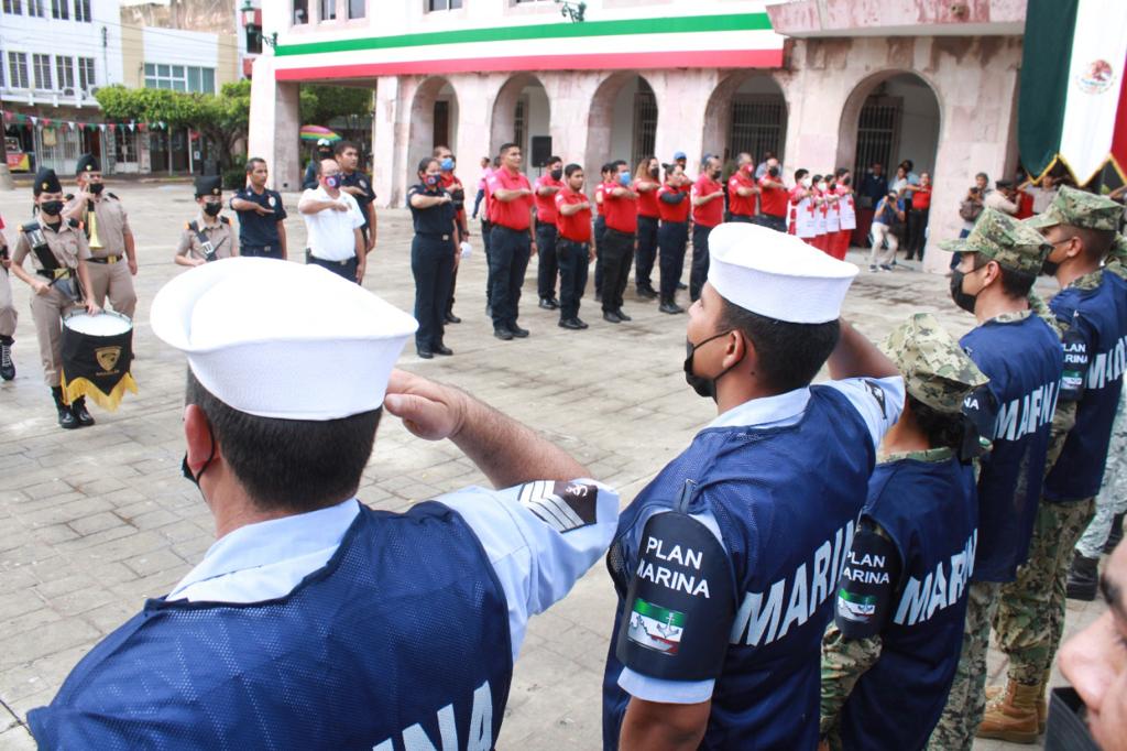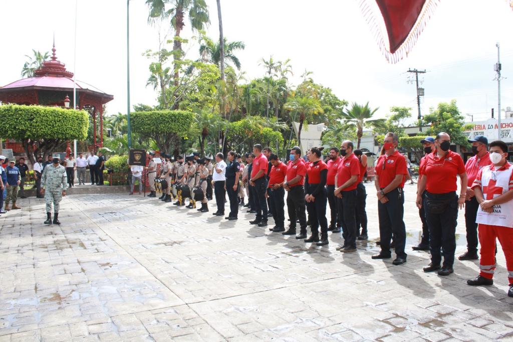 Mazatlán.- El Gobierno Municipal conmemoró este lunes el Día Nacional de Protección Civil y para ello izó bandera hasta media asta en la explanada de la Plazuela República.