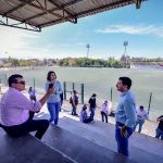 Los trabajos de habilitación del graderío de la Unidad Deportiva Toledo Corro fueron supervisadas por el Alcalde Edgar González junto a la directora del Imdem, Fabiola Verde, y el director de Obras Públicas, Rigoberto Arámburo, encontrándose ya con un avance en la instalación de sus bases.