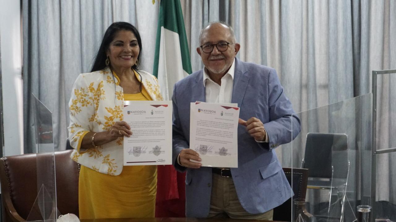 «(…) Con la finalidad de generar una estrategia de colaboración a través de acciones conjuntas y/o complementarias que tengan como objetivo general el intercambio económico, turístico y cultural entre el municipio de Navojoa y el municipio de Mazatlán», dijo el Químico Benitez Torres.