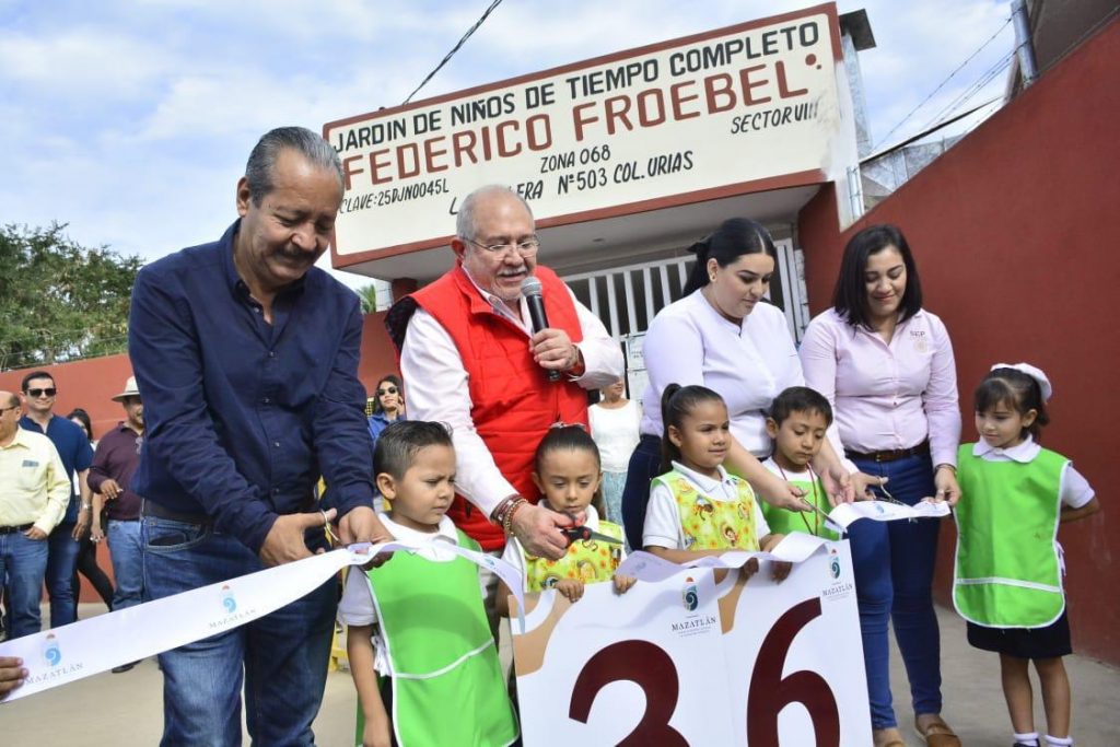 Al inaugurar la obra número 36, de lo que va de este 2020, que fue la barda perimetral construida en el jardín de niños Francisco Froebel, ubicado en la Colonia Urías, en lo que se invirtieron 335 mil 330.62, de recursos directos, el alcalde mazatleco indicó que esta obra es un pago a la deuda que dejaron los gobiernos anteriores con la ciudadanía mazatleca, y es parte de la justicia social que la Cuarta Transformación lleva a cabo a través de su Administración.