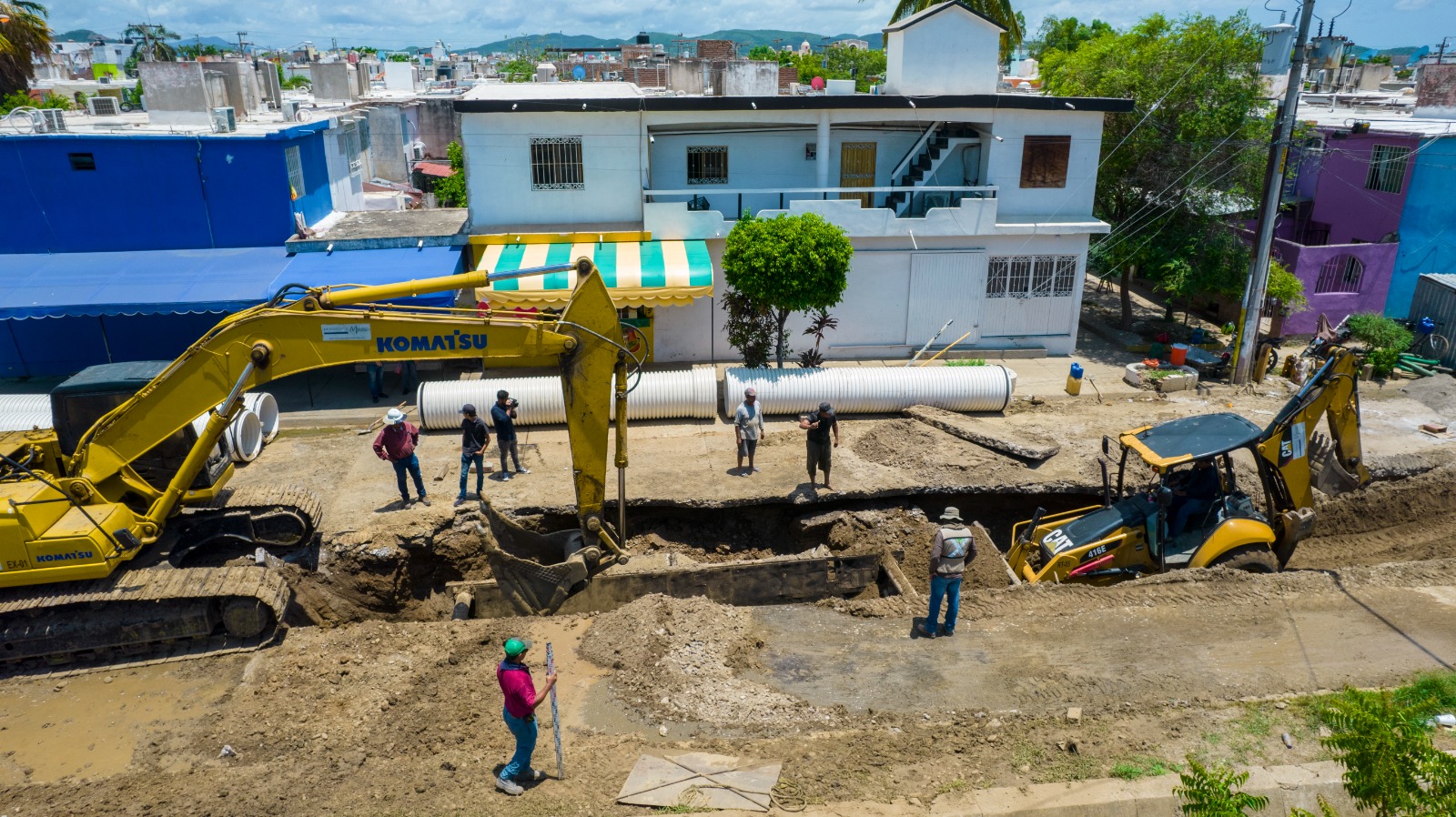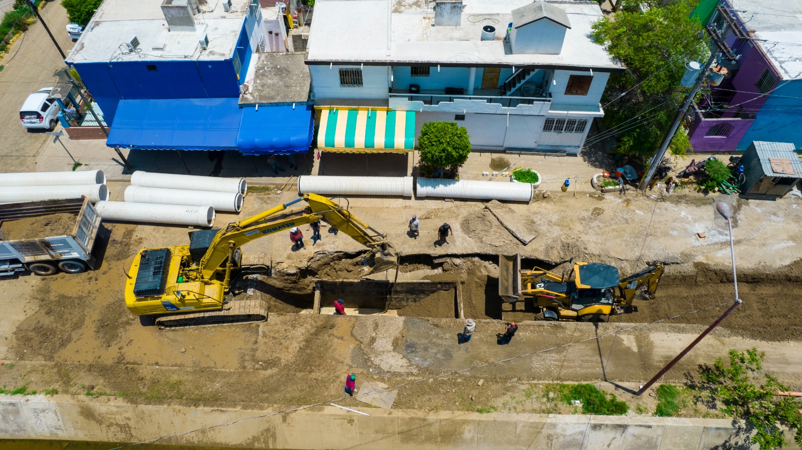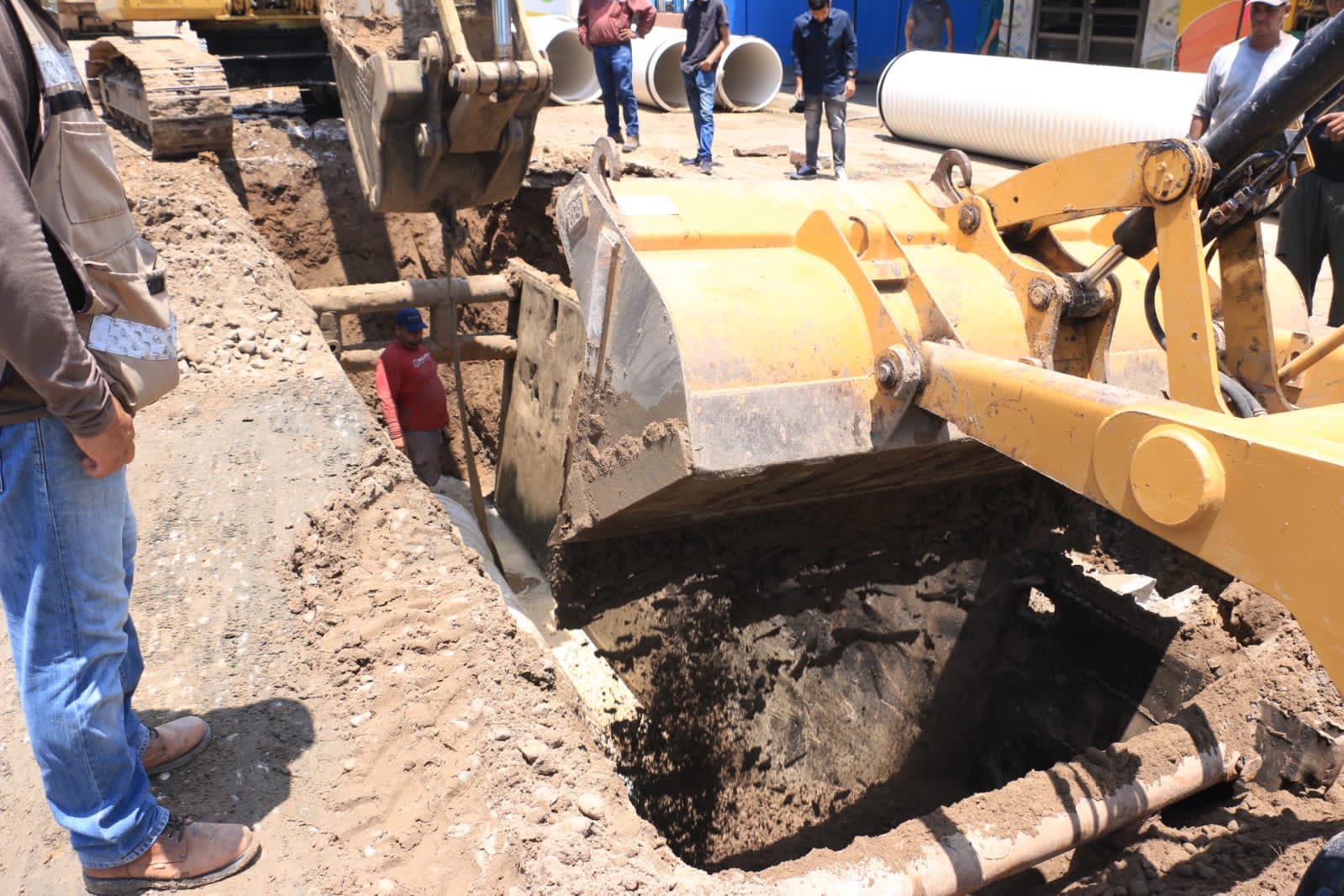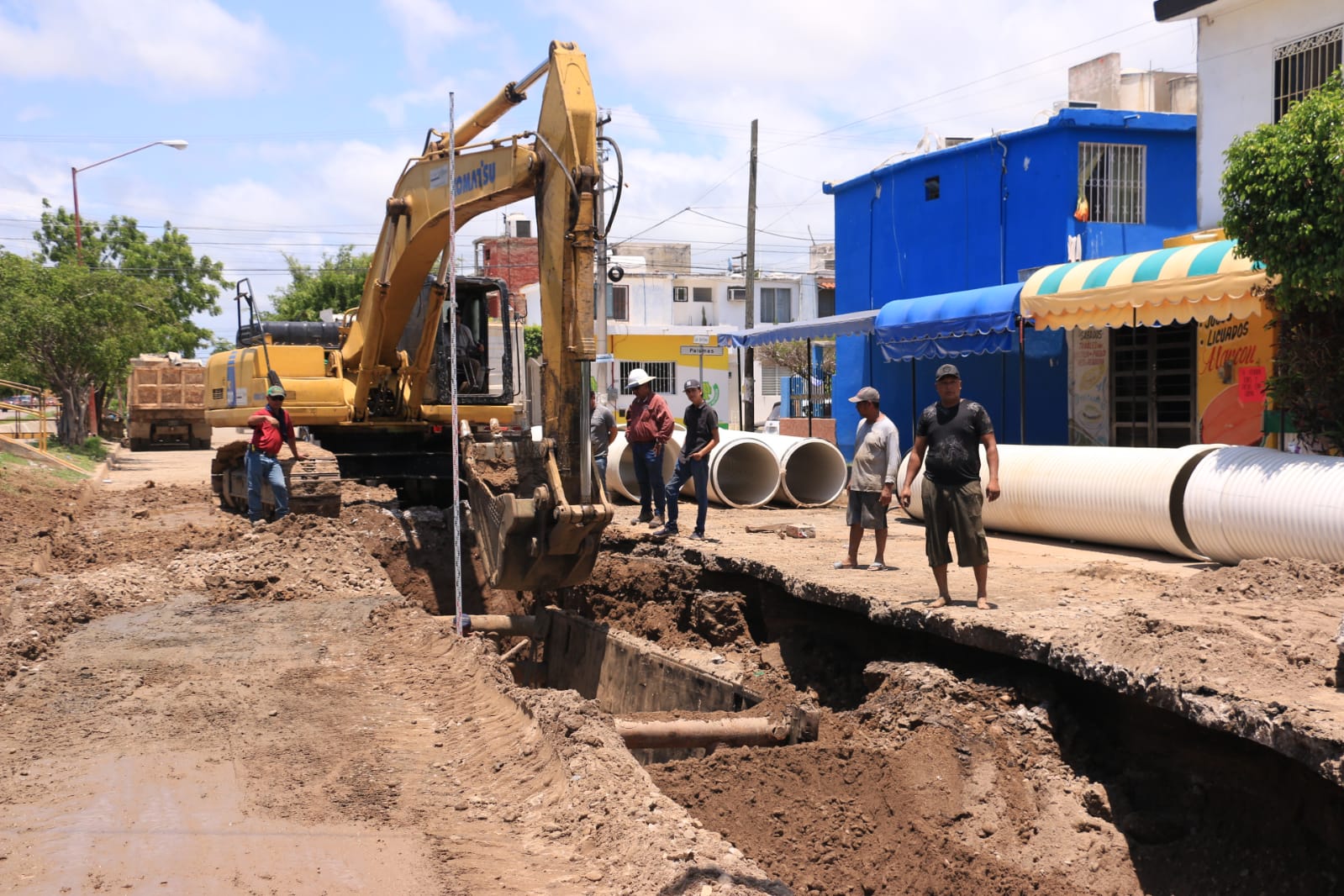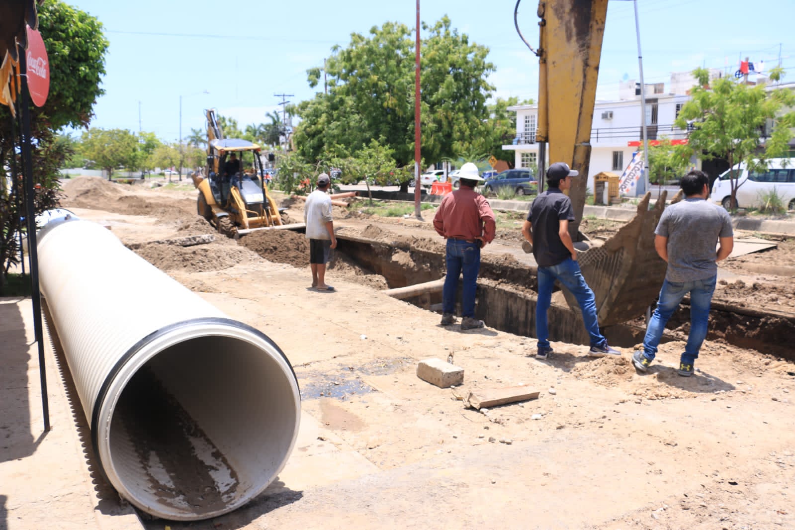 Mazatlán, Sinaloa, 07 de agosto de 2023.- Los trabajos de reposición del colector de la avenida Delfín ubicada en el Infonavit Alarcon, avanzan rápida y favorablemente en beneficio de decenas de vecinos que habitan en la zona y colonias aledañas.