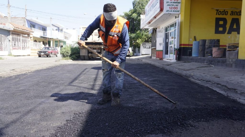 Este martes, una cuadrilla especial de 10 empleados del área operativa de la Dirección de Obras Públicas aplicó 9 metros cúbicos de asfalto para atender la avenida México 68 y avenida Insurgentes en Villa Galaxia, fraccionamiento Pradera Dorada, y calle Insurgentes en Infonavit Jabalies.