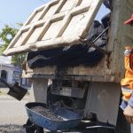 Una cuadrilla especial de empleados del área operativa de la Dirección de Obras Públicas aplica todos los días 9 metros cúbicos de asfalto
