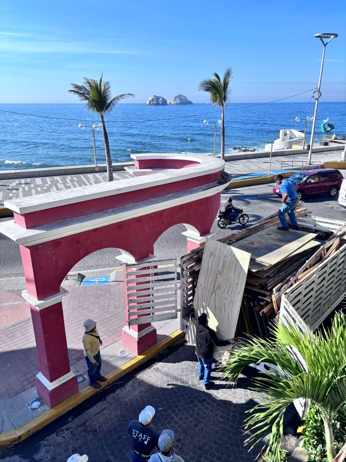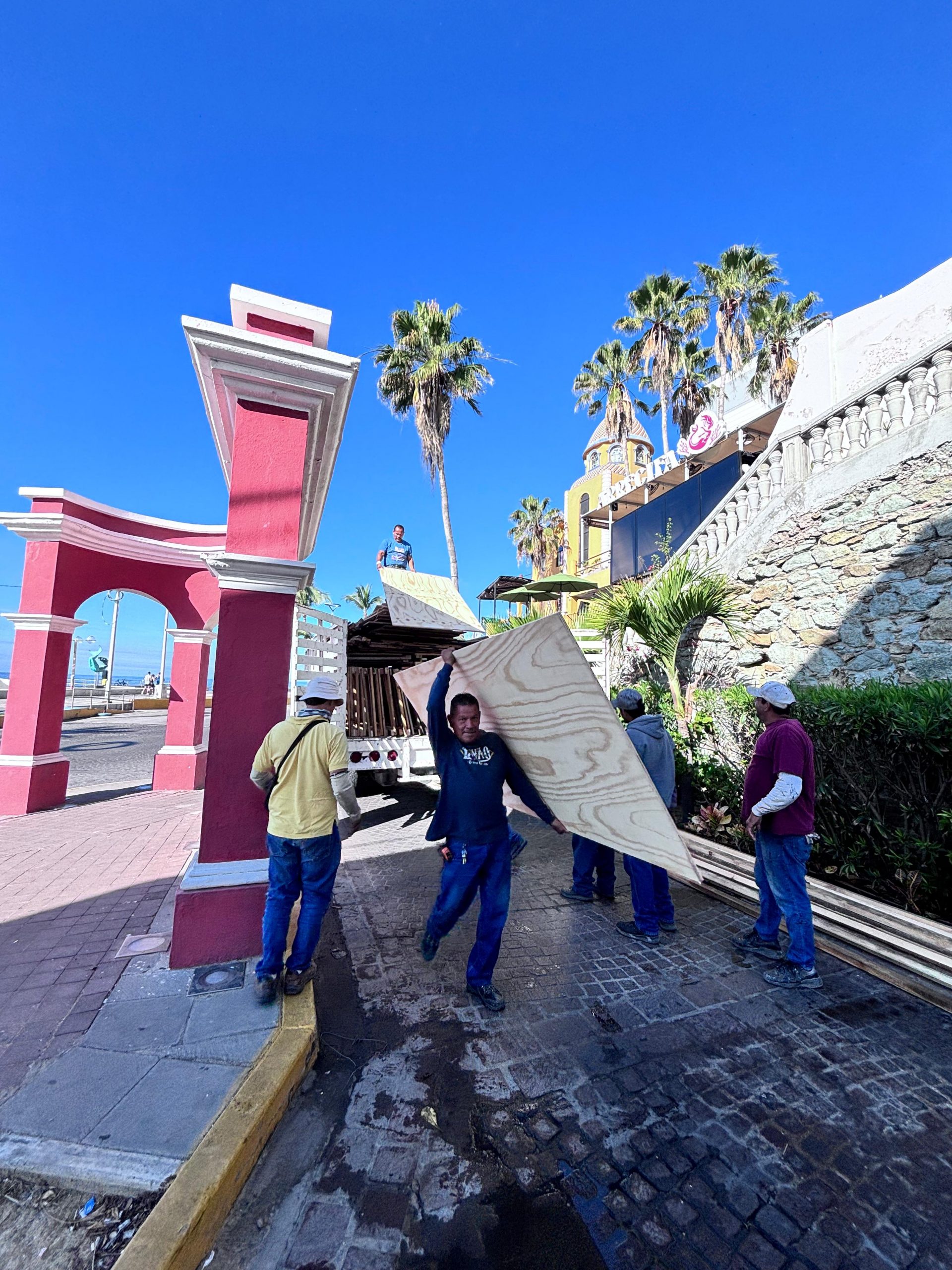 Mazatlán, Sinaloa, 22 de enero de 2025.- El Instituto Municipal de Cultura, Turismo y Arte de Mazatlán realiza los trabajos de carpintería finales para instalar sanitarios en la zona de Olas Altas, específicamente en la calle Ángel Flores, con el objetivo de brindar servicios durante el Carnaval Internacional Mazatlán 2025.