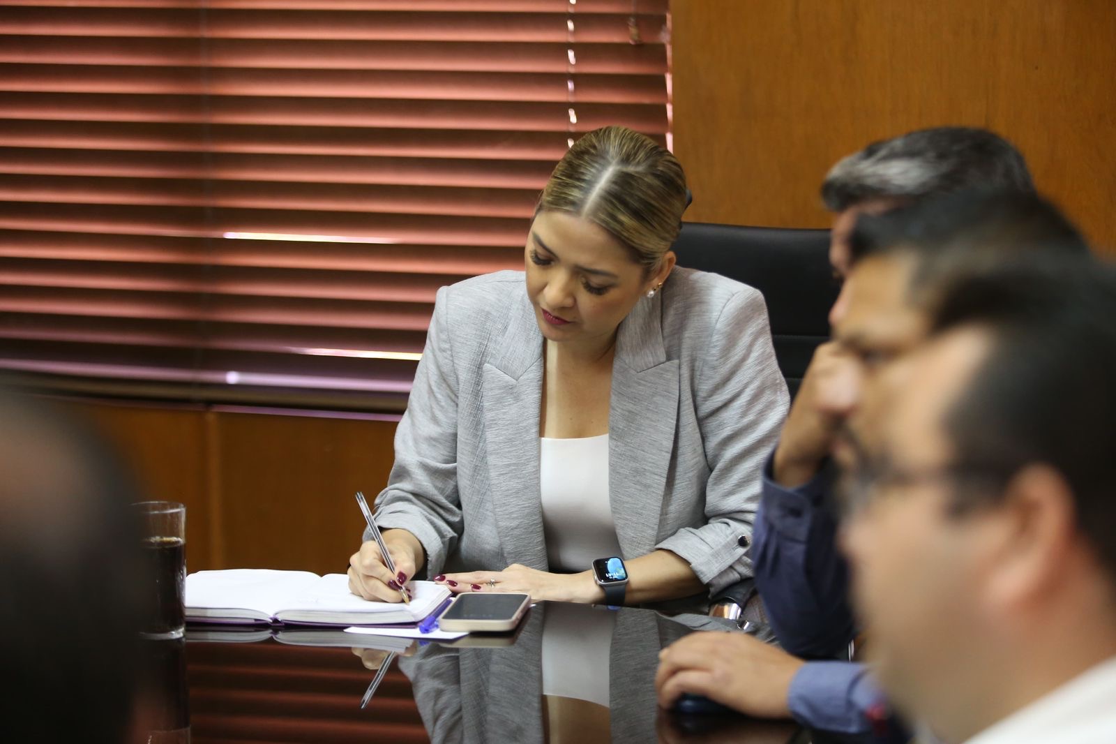 En la reunión, estuvieron presentes el Tesorero Municipal, Pablo Francisco Bedoya Bañuelos; el Director de Bienestar y Desarrollo Rural, Javier García Ruiz; la Directora de Servicios Públicos, Karla Angélica Camacho Guzmán; el Director de Evaluación y Enlace de Zona Rural, Jesús Osuna Lamarque; así como los titulares de las áreas de Medición, Distribución, Gestión Comercial y Planeación, Proyectos y Construcción de CFE.