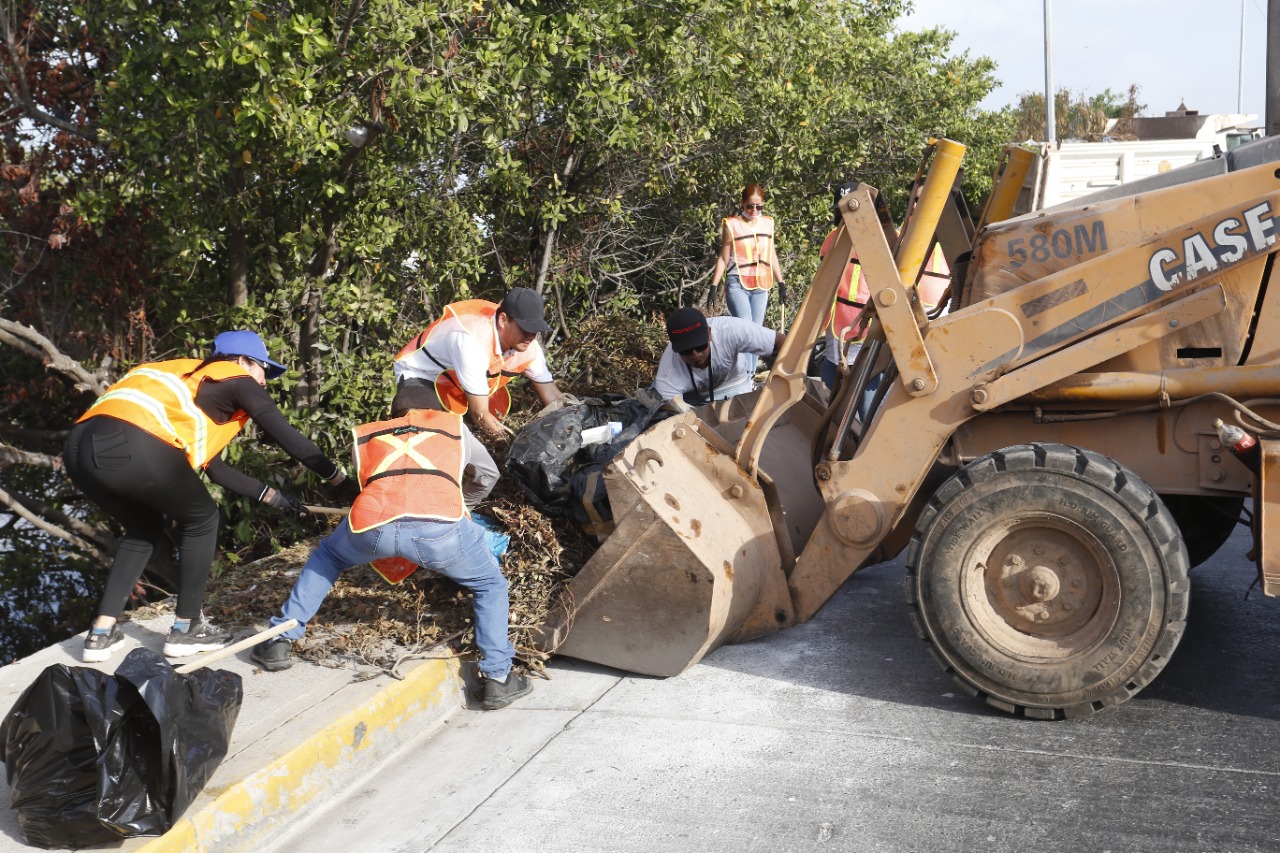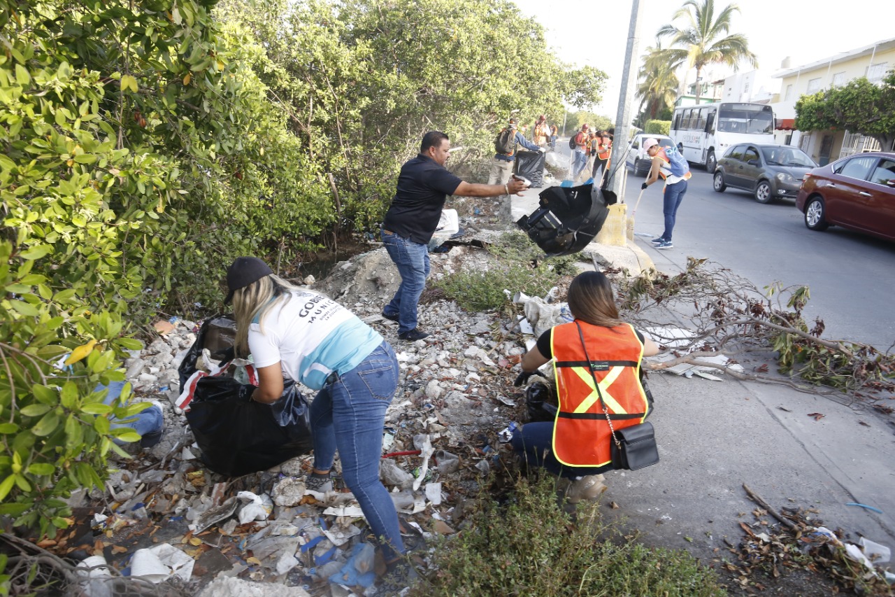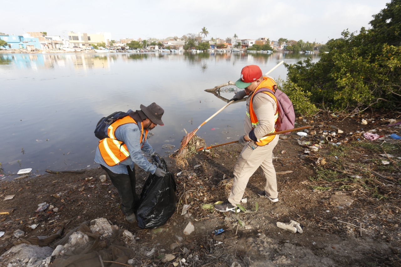 Mazatlán, SIN. – Ante el inicio de la temporada de precipitaciones pluviales y para que la población tome conciencia de no tirar basura en arroyos o cuerpos de agua en Mazatlán, la Dirección de Servicios Públicos con el apoyo de otras dependencias de el Ayuntamiento, arrancó este sábado la campaña de limpieza “En temporada de lluvias, que el agua fluya”, actividad que empezaron en los márgenes del Estero del Infiernillo, informó David Ibarra Olmeda, titular del área.