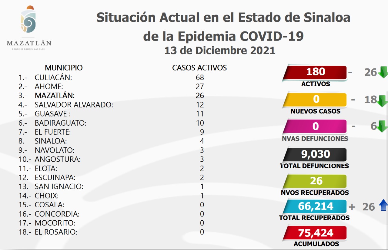 Cristian Castillo López, encargado de Protocolos y Sanidad del Municipio, comentó que Mazatlán se mantiene en el tercer sitio a nivel estatal después de Culiacán, que tiene 68 casos activos y Ahome 27.