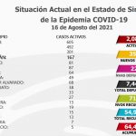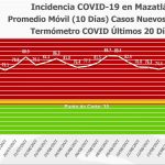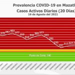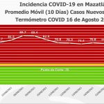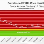 Dijo que Mazatlán se mantiene en color rojo del Semáforo Epidemiológico Estatal y hoy cumple siete días consecutivos en el cuarto lugar en Sinaloa, superado por los municipios de Culiacán que hoy tiene 605, Ahome 492 y Guasave 301 casos activos.