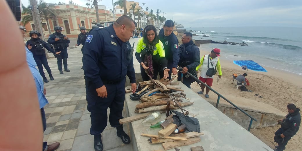 Mazatlán.- Como parte del operativo de seguridad implementado para la celebración de fin de año “Bienvenido 2020”, en la zona de Olas Altas, la Secretaría de Seguridad Pública y Tránsito Municipal llevó a cabo una limpieza profunda en el área de playa.
