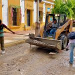 Luego de las intensas lluvias de la semana anterior cuadrillas de servicios públicos se dan a la tarea de retirar la tierra excedente que quedó en las calles.