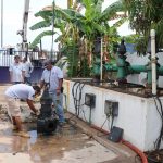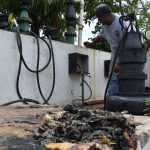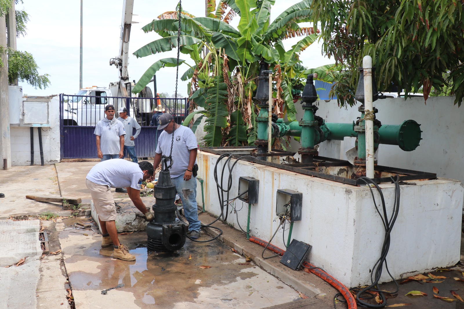 “A consecuencia de la lluvia de la madrugada de hoy, con la basura que arrastra, se atascaron las partes que impulsan el agua hacia la línea. Ahorita lo que están haciendo es un (trabajo) preventivo, no dañó equipos, no dañó bomba ni motor, el tema es nada más el atasque y es lo que se está haciendo con los tres equipos que están instalados”, explicó sobre las maniobras de extracción de las tres bombas para su limpieza manual.