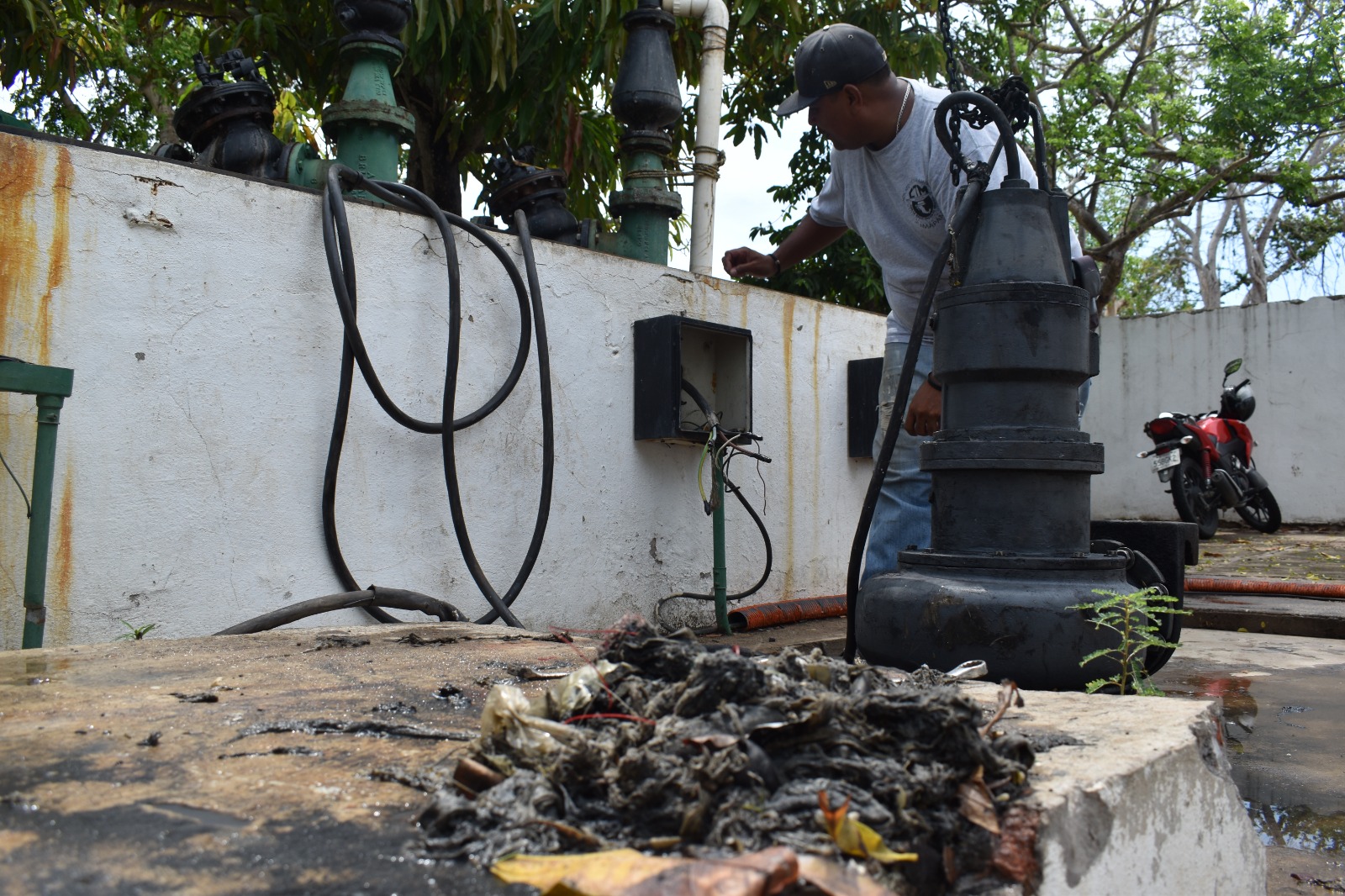 Mazatlán, Sinaloa, 13 de julio de 2023.- Además de triplicarse el volumen de las aguas residuales en los cárcamos de rebombeo del sistema de alcantarillado, tras las lluvias registradas al amanecer de este jueves, también se incrementó la cantidad de basura, al grado que las tres bombas del Cárcamo Cerritos se atascaron y debieron ser sometidas a limpieza manual.