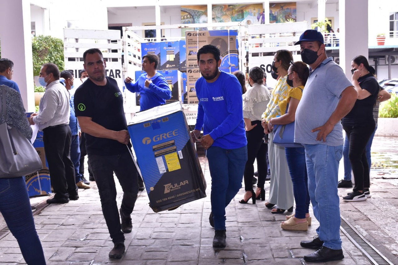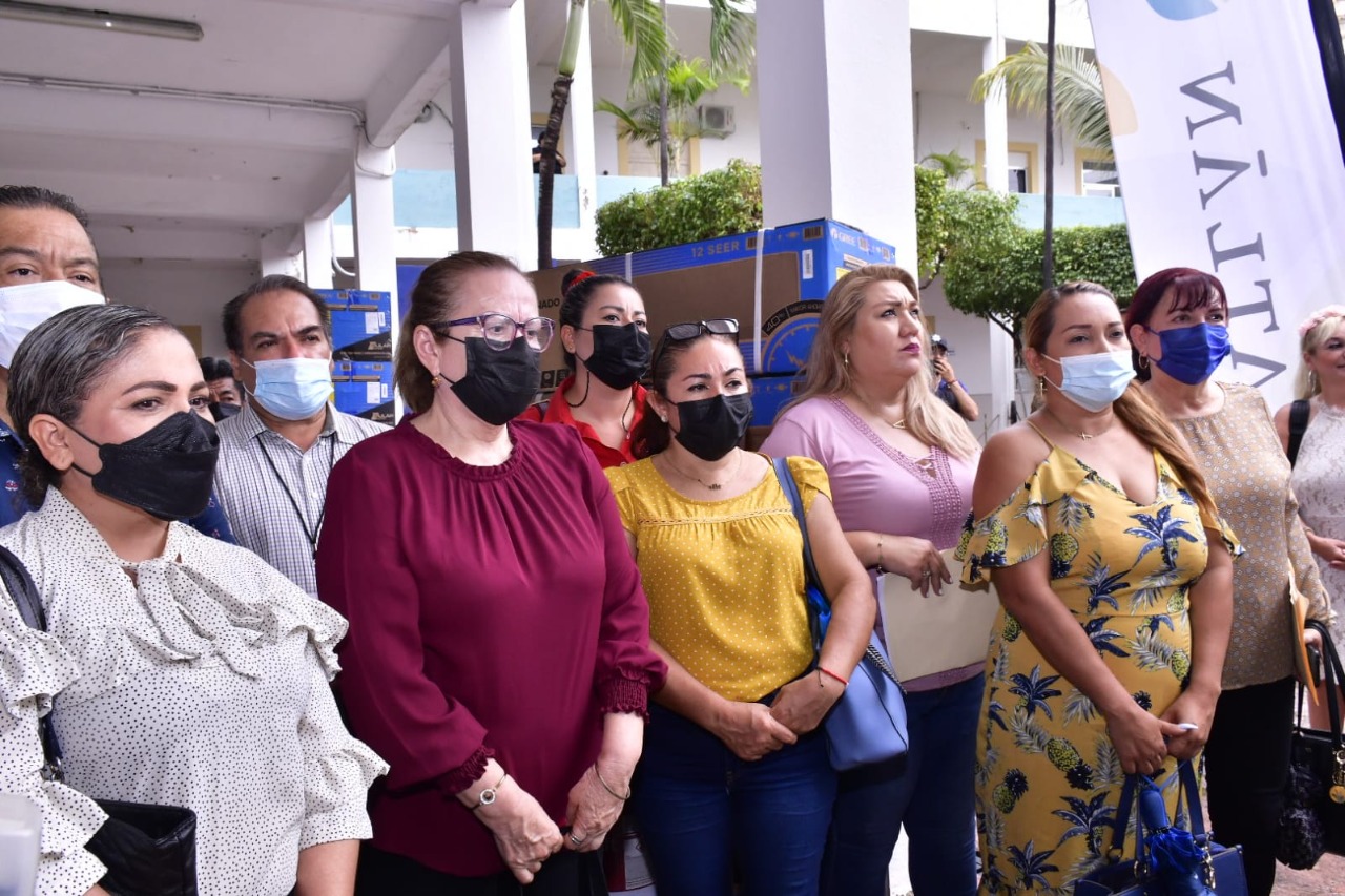 Mazatlán, SIN.- El Gobierno Municipal, encabezado por el Alcalde, Luis Guillermo Benitez Torres, entregó este viernes 35 minisplit a 16 escuelas de Mazatlán, a través de la Dirección de Bienestar Social; esto, para mejorar el ambiente y condiciones de estudio de 5 mil 100 alumnos en aulas.