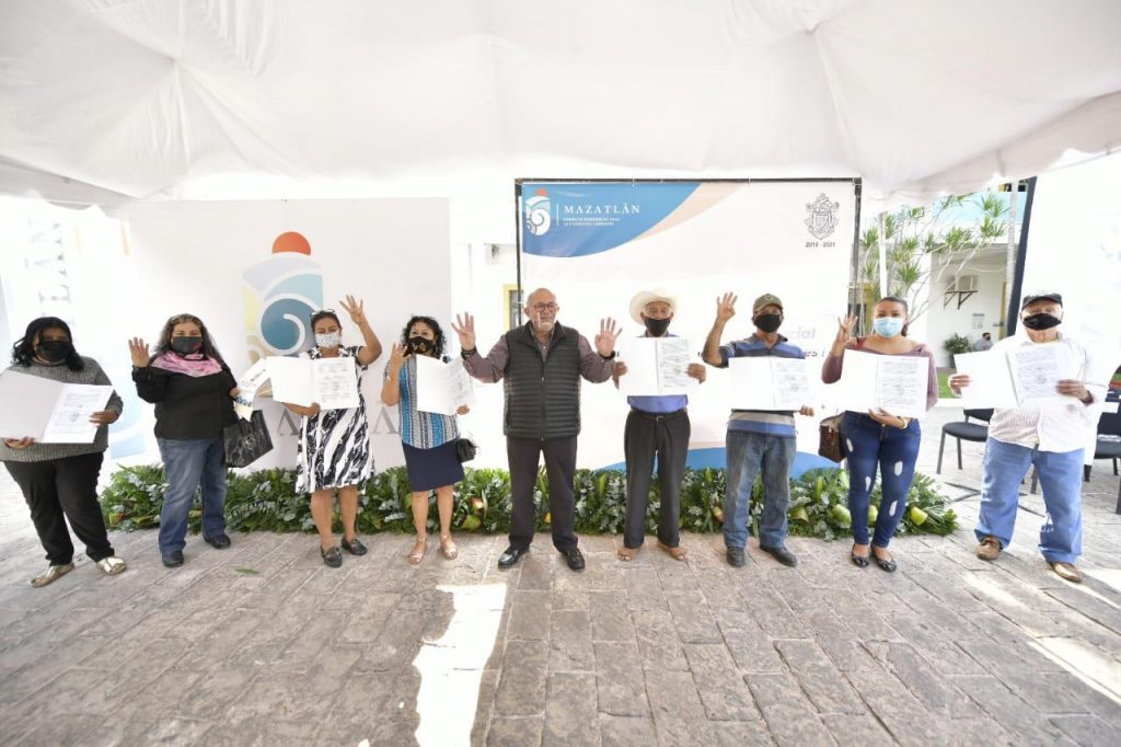Mazatlán.- El Gobierno Municipal que encabeza el Alcalde Luis Guillermo Benitez Torres, a través de la Dirección de Vivienda y Tenencia de la Tierra, llevó a cabo esta mañana la entrega de 298 escrituras de propiedad gratuitas a familias de 30 colonias populares del puerto.