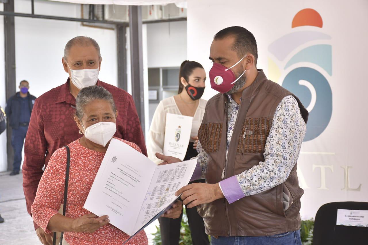 Mazatlán.- El Gobierno Municipal que encabeza el Alcalde Luis Guillermo Benitez Torres, a través de la Dirección de Vivienda y Tenencia de la Tierra, llevó a cabo esta mañana la entrega de 298 escrituras de propiedad gratuitas a familias de 30 colonias populares del puerto.