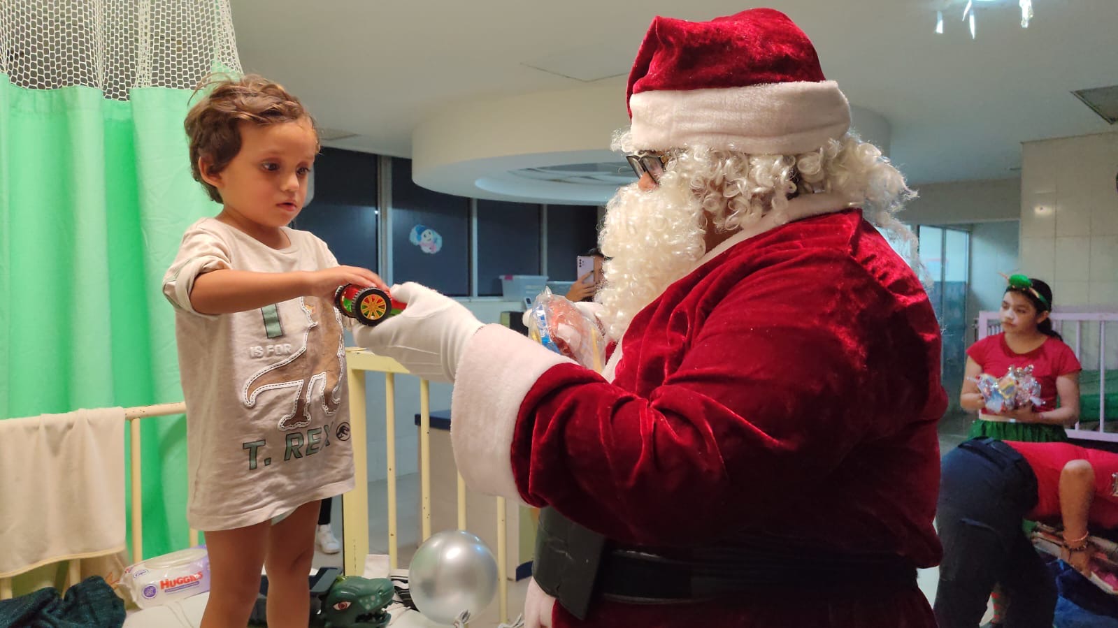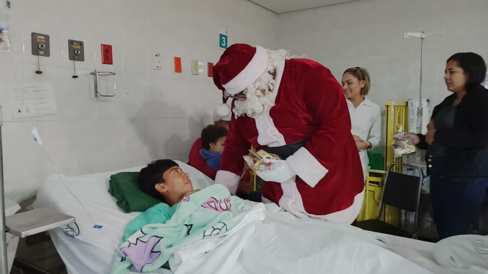 Pero también los adultos que se encontraban trabajando o a la espera de una buena noticia en los hospitales recibieron la visita de Santa Claus, una bebida caliente y una pieza de pan hizo amena la estadía, además recibir el mensaje de feliz navidad.
