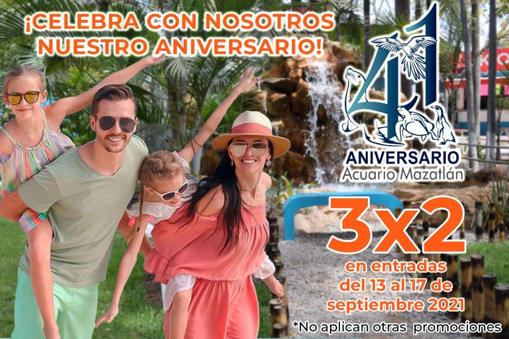 Mazatlán_ Para hacer partícipes a los visitantes de Acuario Mazatlán en la celebración del 41 aniversario, la paramunicipal lanza la promoción del 3×2 en entrada general.