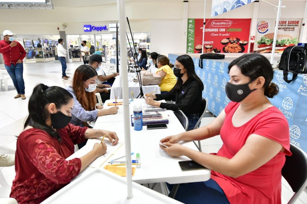 Destacó que con el apoyo de Sedectur y su bolsa de trabajo Por Maz, la empresa SIP y Plaza Acaya, tienen una oferta de más de 100 vacantes para puestos como auxiliares administrativos, de cocina, de jardinería, estilitas, guardias de seguridad, médicos y enfermeras, entre otros.