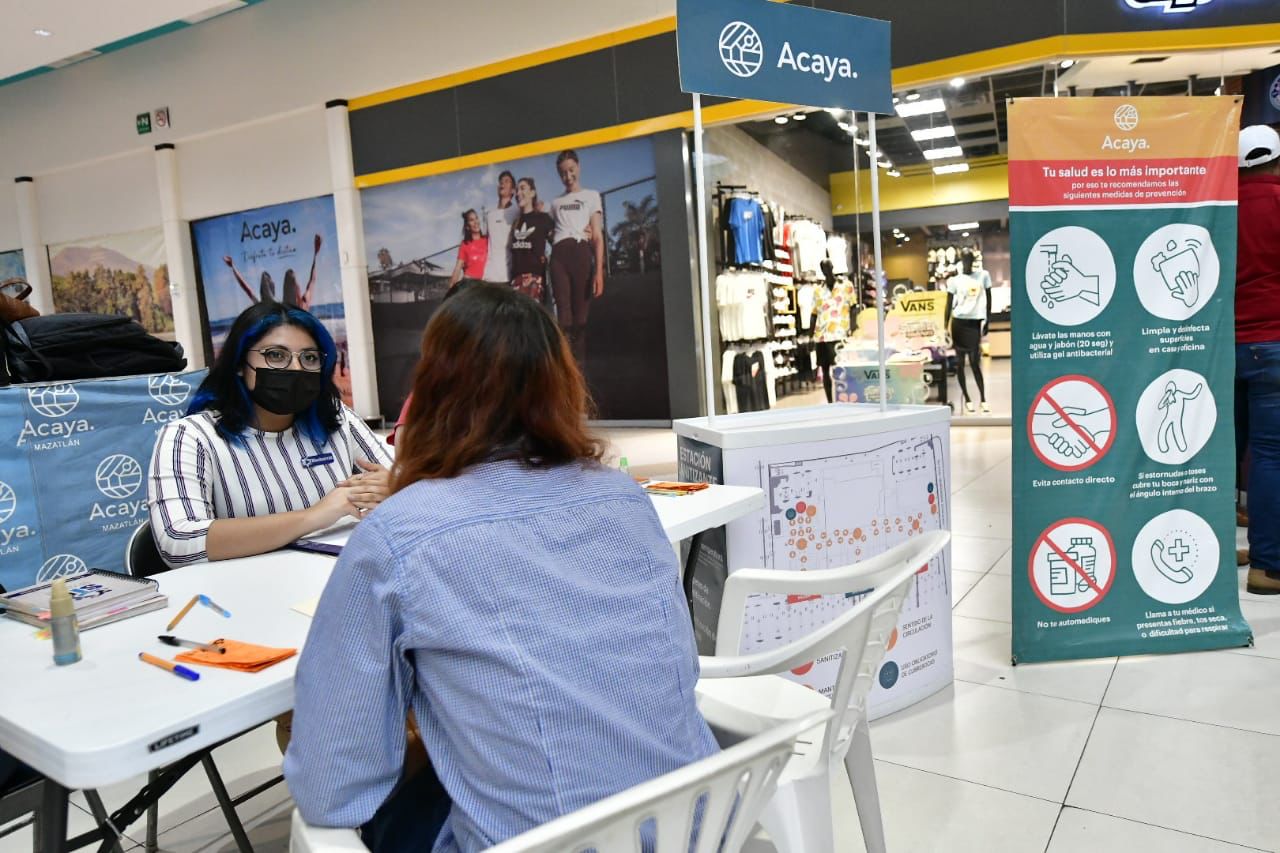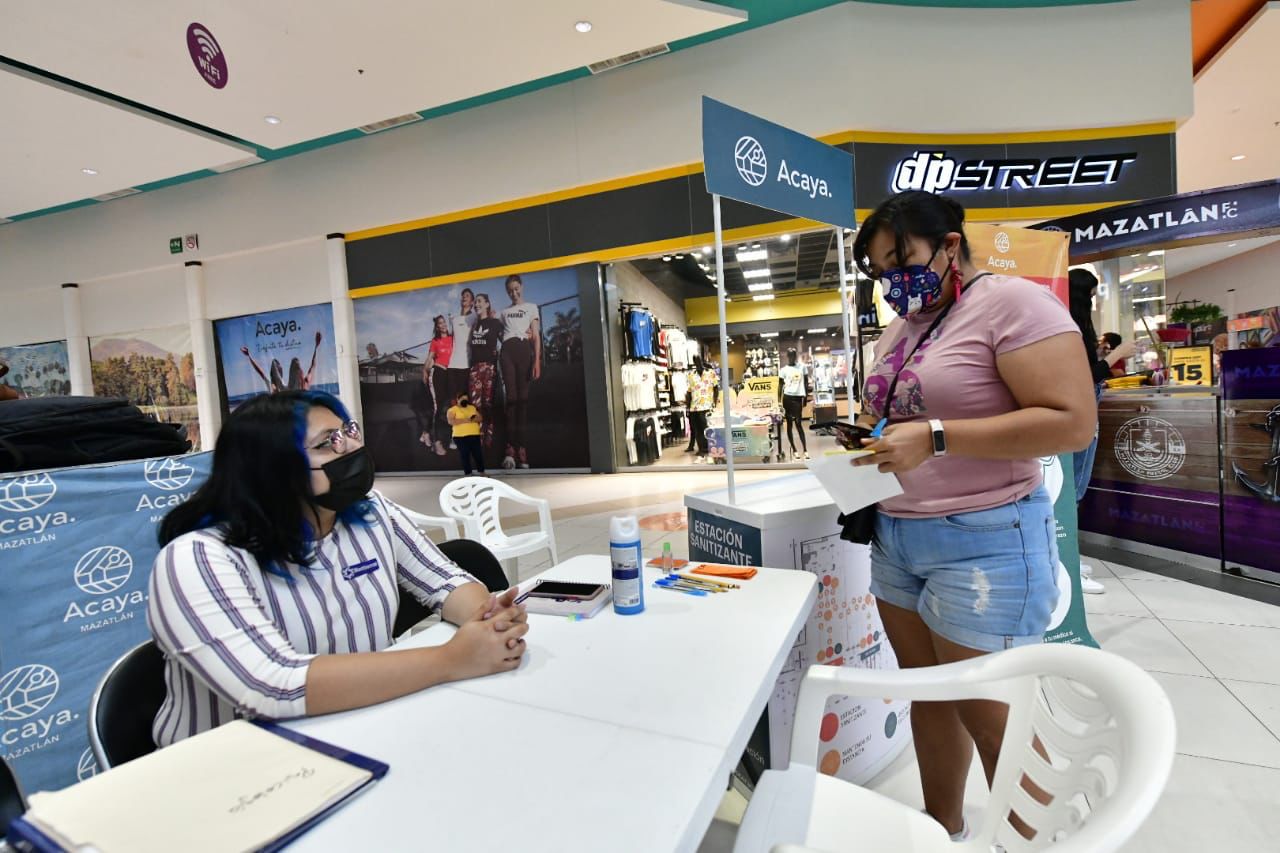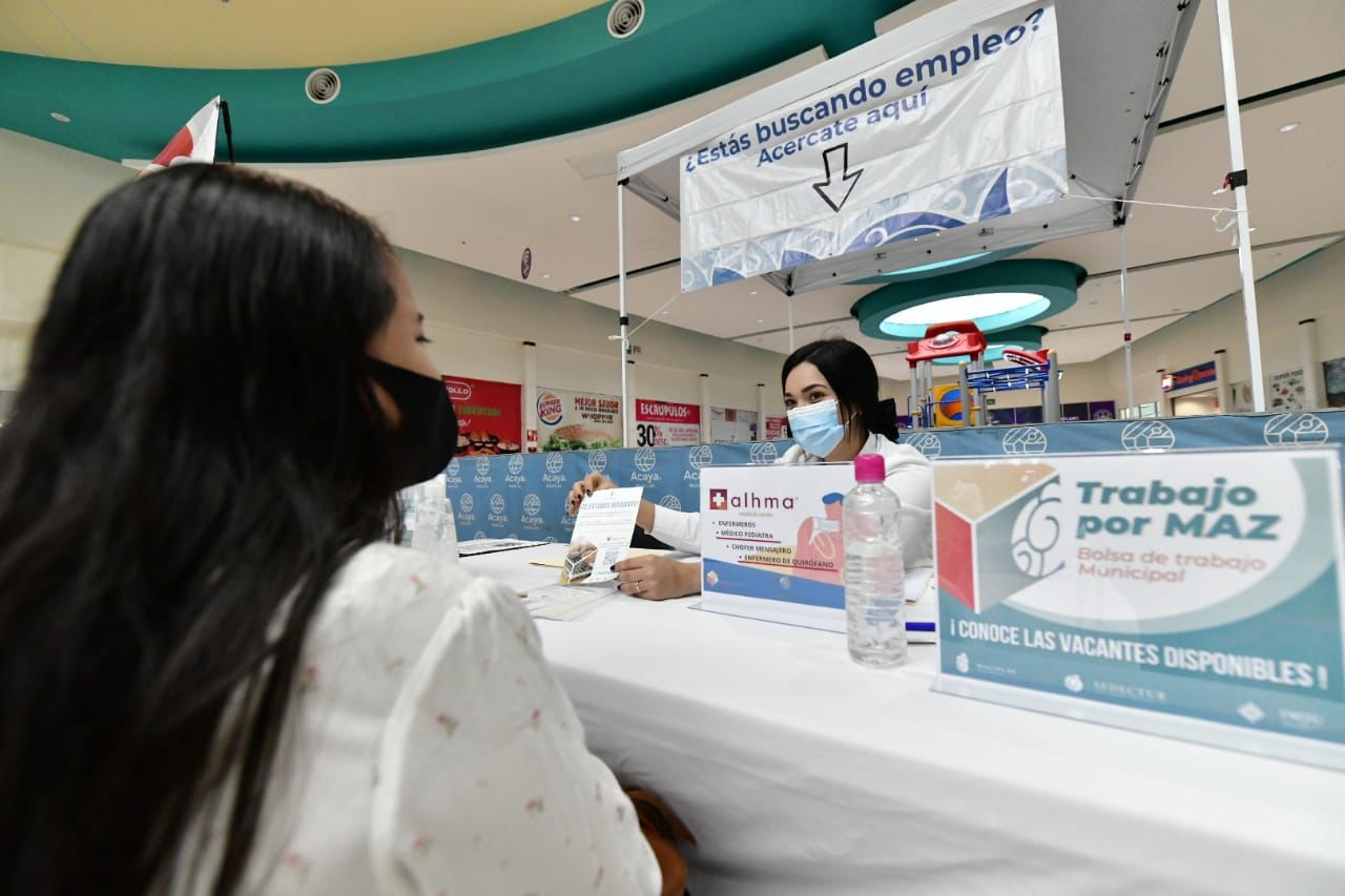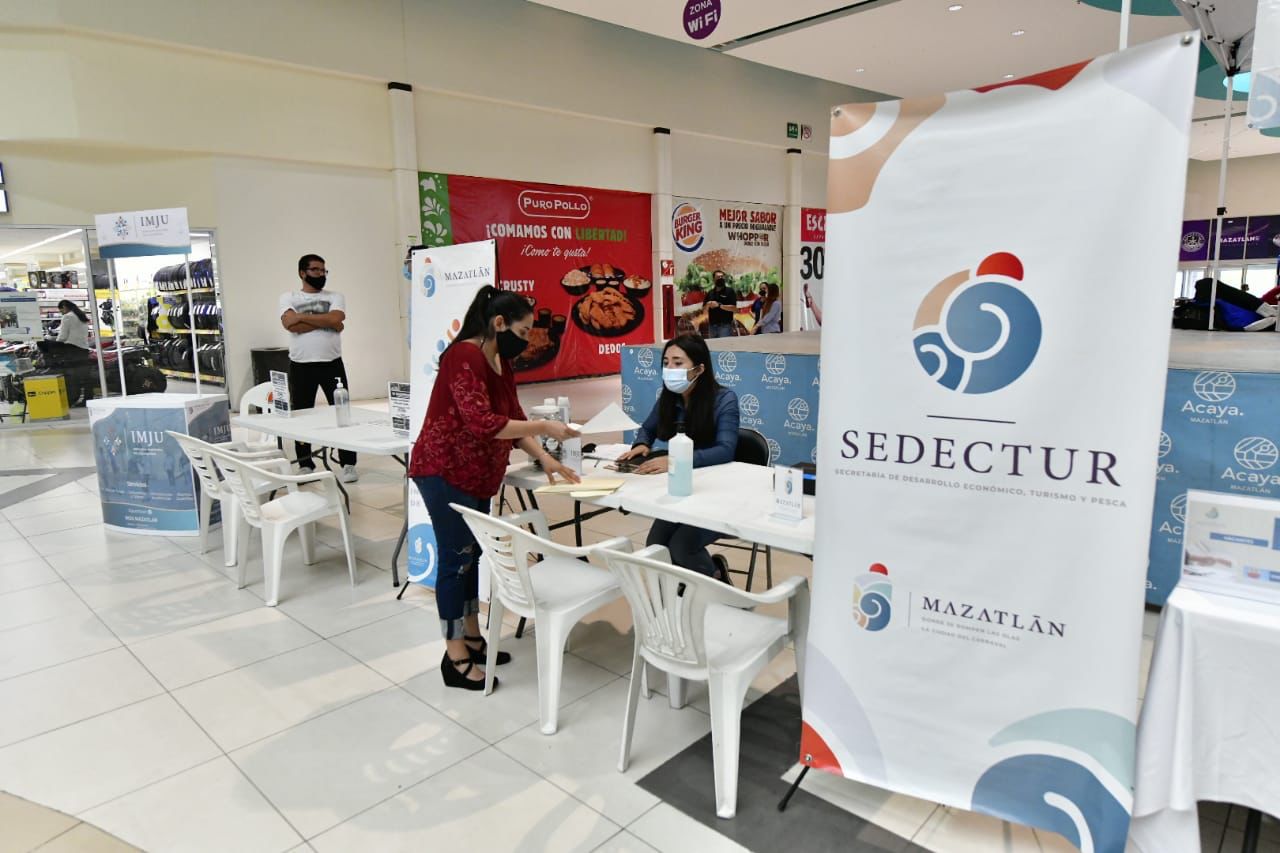 Destacó que con el apoyo de Sedectur y su bolsa de trabajo Por Maz, la empresa SIP y Plaza Acaya, tienen una oferta de más de 100 vacantes para puestos como auxiliares administrativos, de cocina, de jardinería, estilitas, guardias de seguridad, médicos y enfermeras, entre otros.
