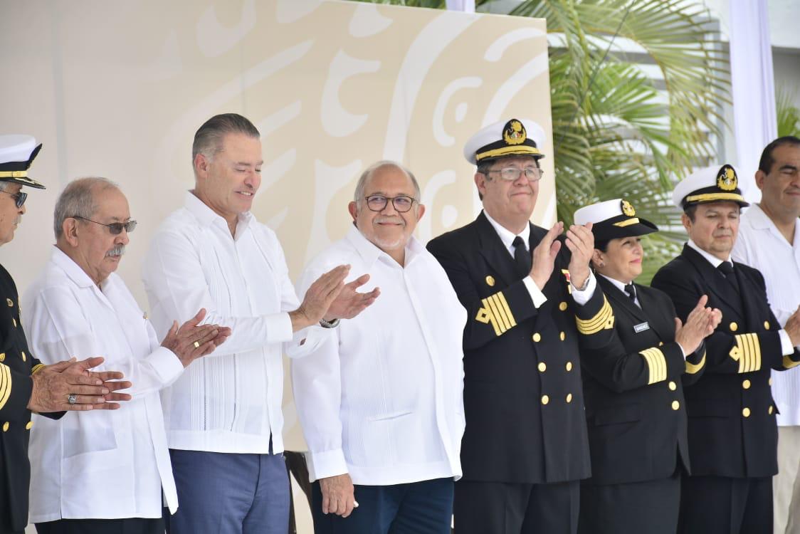 Encabezan la ceremonia Luis Guillermo Benitez Torres, Quirino Ordaz Coppel y Héctor López Gutiérrez, Coordinador General de Puertos y Marina Mercante
