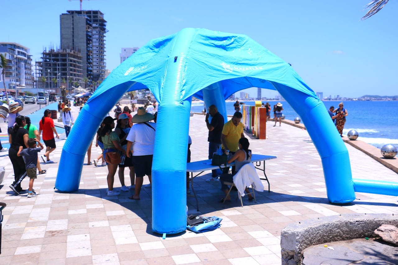 Mazatlán, Sinaloa, 27 de julio de 2023.- A partir de este fin de semana el Centro de Atención y Protección al Turista instala un módulo en la explanada del parador fotográfico a un costado del monumento a la familia.