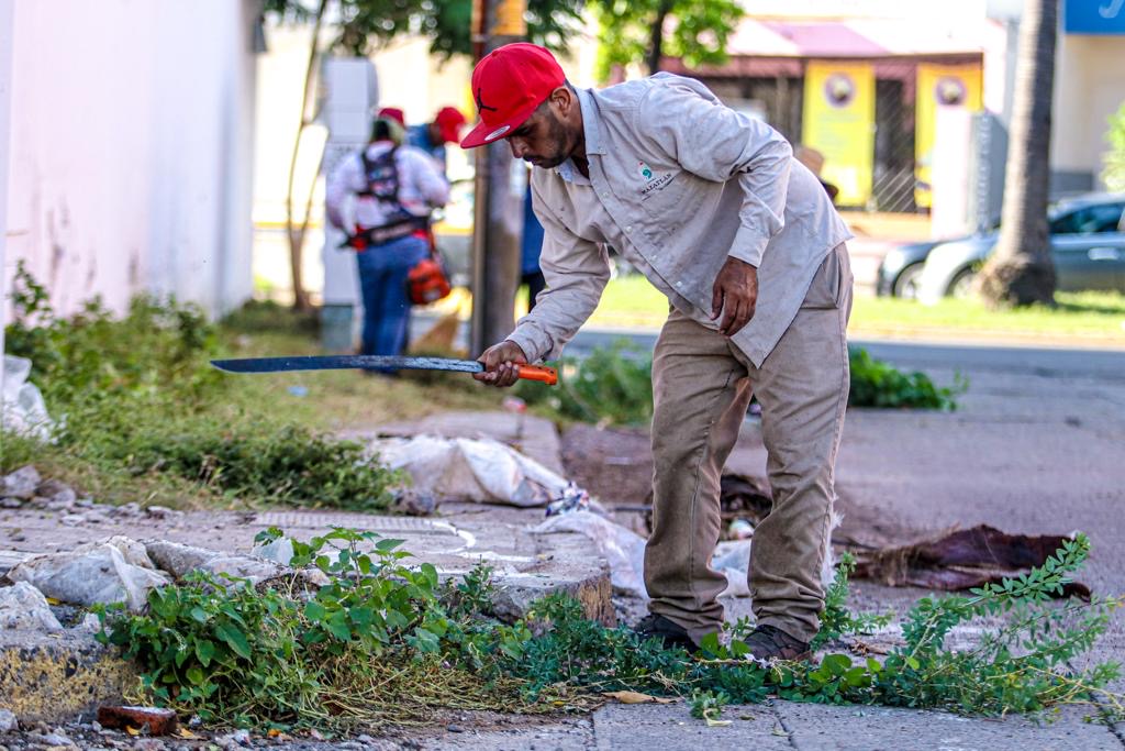 Mazatlán, Sinaloa, 7 de octubre de 2023.- Mantener la vía pública de colonias y fraccionamientos de la ciudad limpias, libres de maleza, con buena imagen y brindar con ello mayor seguridad a la población es parte de los objetivos de la Dirección de Servicios Públicos.