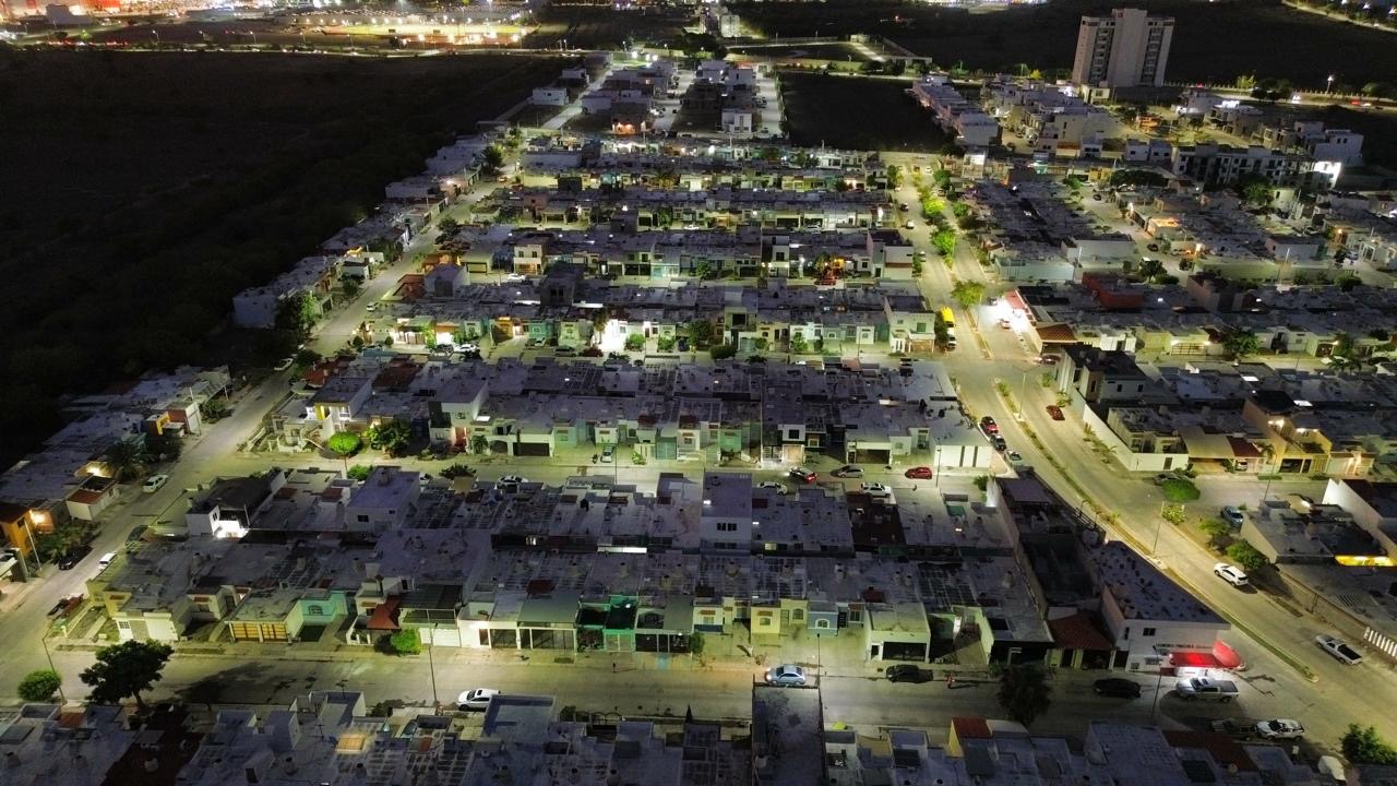 Mazatlán, Sinaloa, 26 de junio de 2025.- Los vecinos del fraccionamiento Real Pacífico fueron beneficiados con la instalación de 297 luminarias ahorradoras LED, como parte del programa “Mazatlán Brilla”, que se extiende por las diversas colonias de la ciudad, con el objetivo de mejorar el entorno y brindar una mayor seguridad a las familias durante las noches.