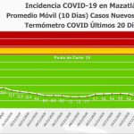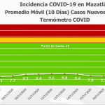 El Termómetro Covid de Casos Nuevos Diarios, con un promedio de 10 días, marca que el municipio se encuentra 7.8 grados, lo que muestra que la incidencia de la enfermedad se mantiene estable, ya que el domingo 15 de noviembre amaneció en 7.9 y el lunes en 7.7 grados.