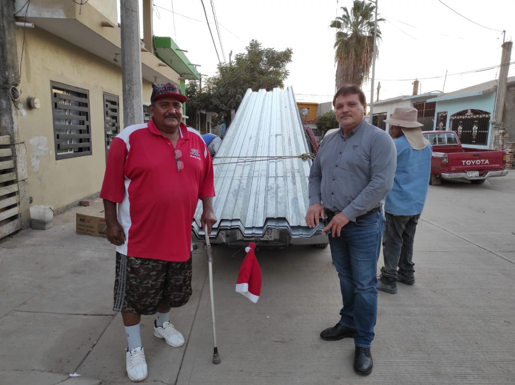 La entrega se realizó durante la tarde del martes en el hogar de los beneficiarios, ubicado en la Colonia Mazatlán I, lugar al que acudió el Regidor para descargar el material y dialogar con ellos.