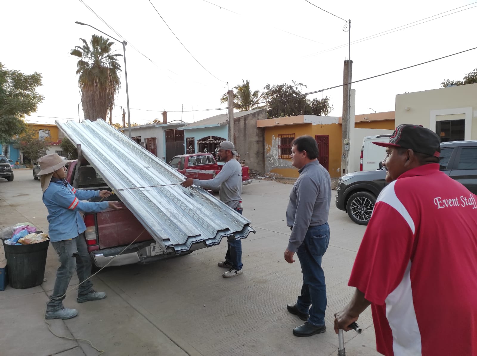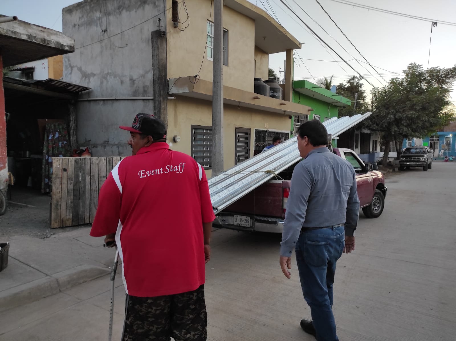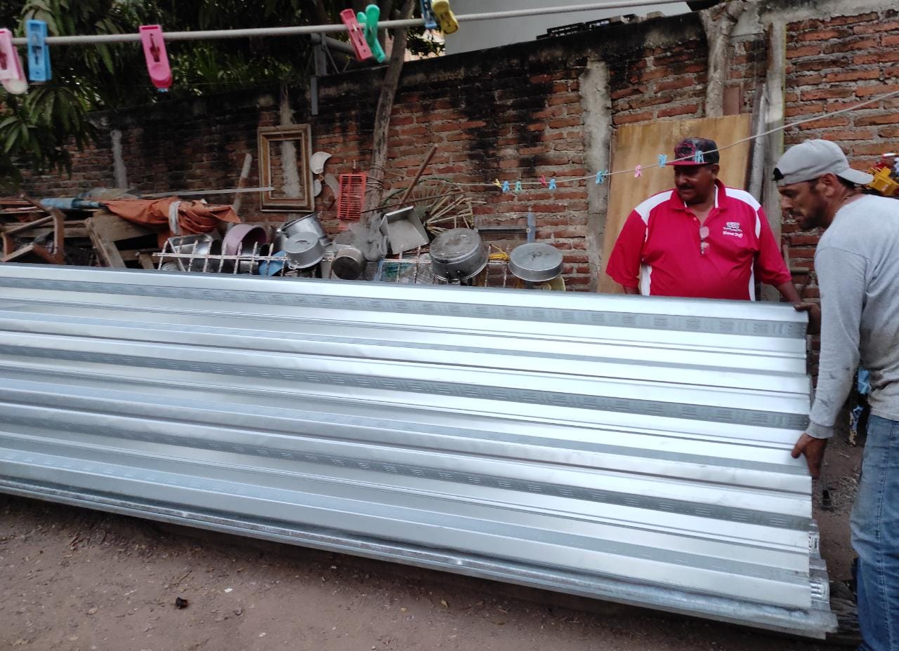 Por su parte, el Señor Ernesto, quien agradeció el apoyo y la disposición del Regidor, aprovechó que las láminas fueron descargadas en el patio de su hogar para mostrar las áreas que pretende cubrir con ellas, como la cocina y baño.