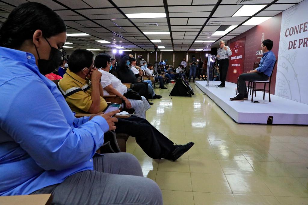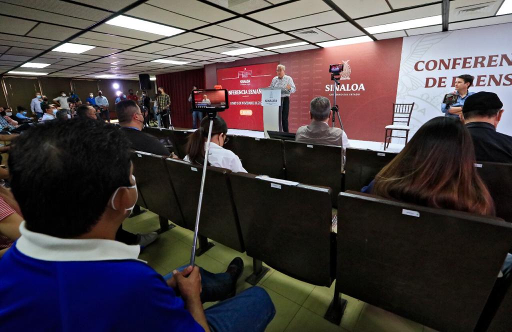 Culiacán, Sinaloa, a 15 de noviembre de 2021.- En su segunda Conferencia Semanera, el gobernador Rubén Rocha Moya se refirió al presupuesto federal aprobado por la Cámara de Diputados la madrugada de este domingo, y que establece un incremento nominal del 6.7 por ciento para Sinaloa, pues para el ejercicio de 2022 se ejercerán en el estado 50 mil 963.3 millones de pesos, con lo que aseguró que a Sinaloa le irá bien.