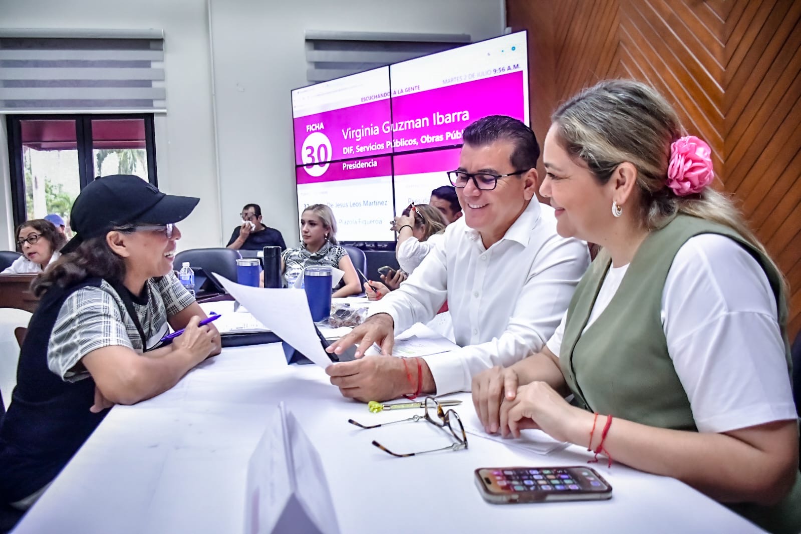 En la última sesión, el Alcalde de Mazatlán, Edgar González, junto a los directores de diversas dependencias y paramunicipales, atendieron a 60 personas que plantearon una variedad de solicitudes, como pavimentaciones, apoyos del Sistema DIF, resolución de problemas con escrituras y asuntos relacionados con JUMAPAM, entre otros.