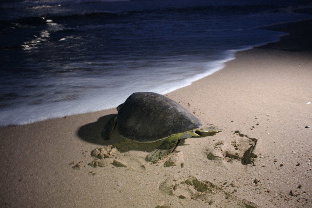 La Temporada de anidación de la Tortuga Golfina (Lepidochelys olivacea) es de julio a Noviembre. Durante este tiempo se trabaja en recorridos nocturnos desde las 20:00 horas a las 06:00 horas del siguiente día.