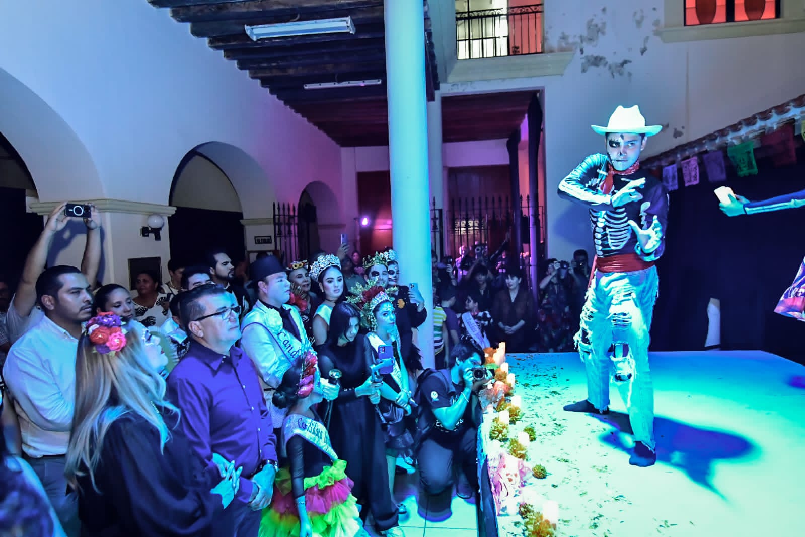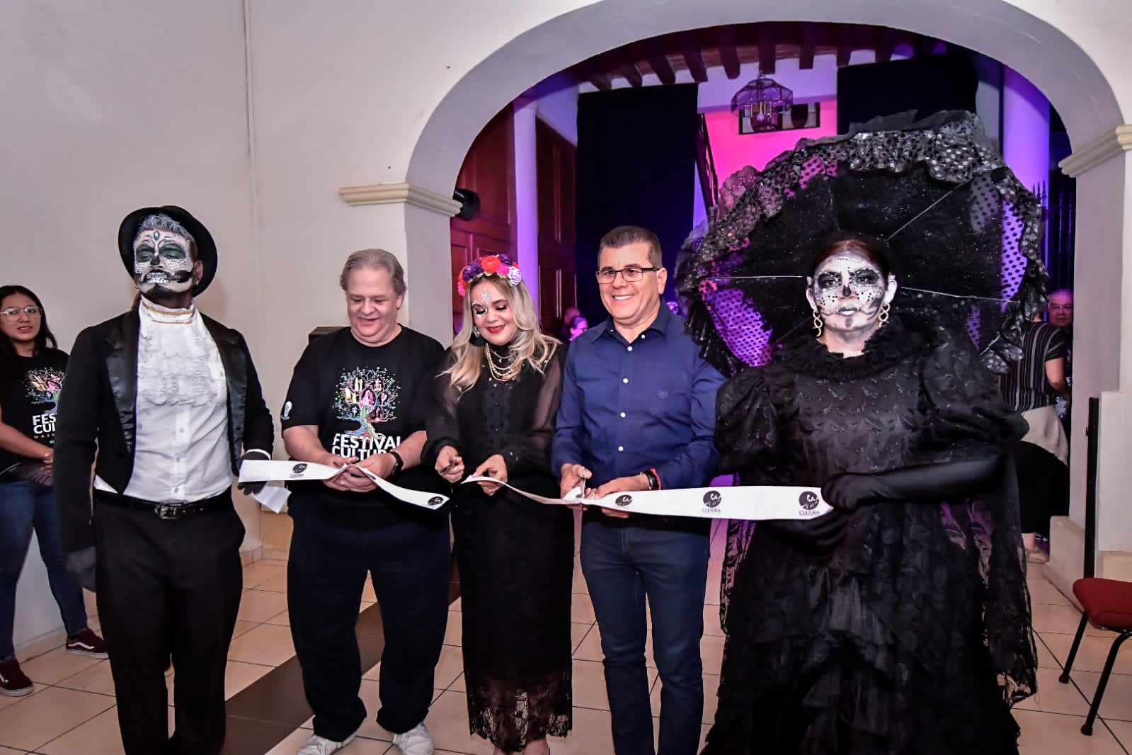 Mazatlán, Sinaloa, 1 de noviembre de 2023-. Con gran éxito se llevó a cabo el festival de Día de muertos. Miles de mazatlecos y turistas se dieron cita en el centro histórico del puerto para participar en la tradicional callejoneada, misma que fue encabezada por Edgar González y la presidenta del DIF María Teresa Apodaca.