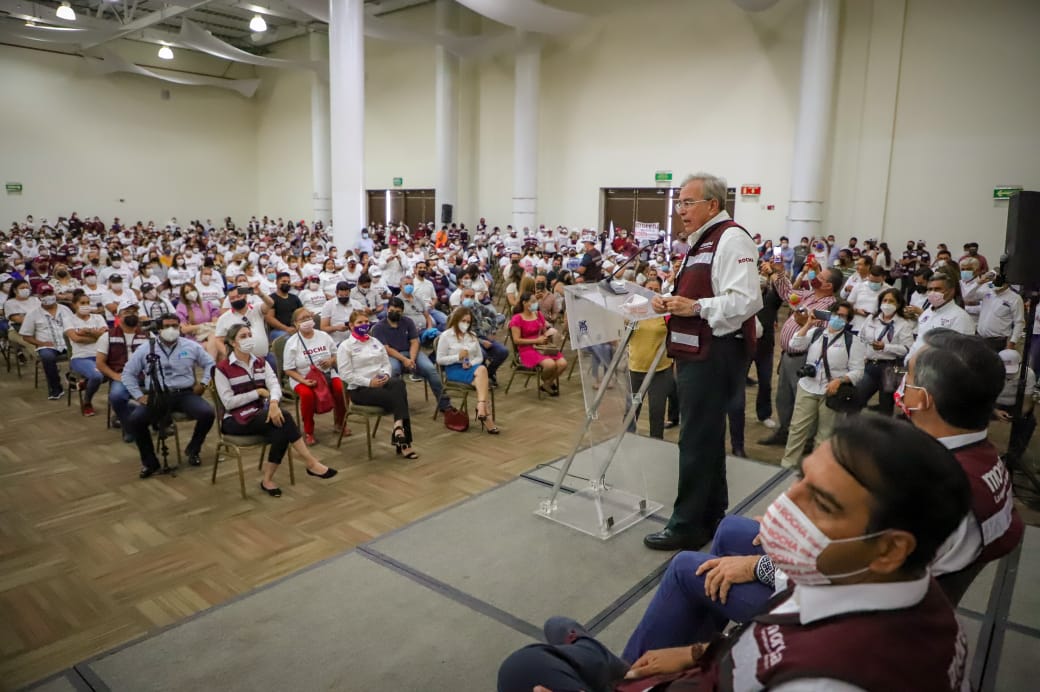 Mazatlán, Sinaloa, domingo 23 de mayo de 2021. En reunión con la estructura electoral y de promoción del voto de Morena de los distritos 20, 21, 22 y 23, encabezada por el senador Eduardo Ramírez Aguilar, presidente de la Mesa Directiva del Senado de la República, el candidato de la alianza Morena-PAS a la gubernatura, Rubén Rocha Moya, confió en que el trabajo de campaña de morenistas y pasistas y el respaldo ciudadano lo llevarán, junto a todos los candidatos, al triunfo el 6 de junio.