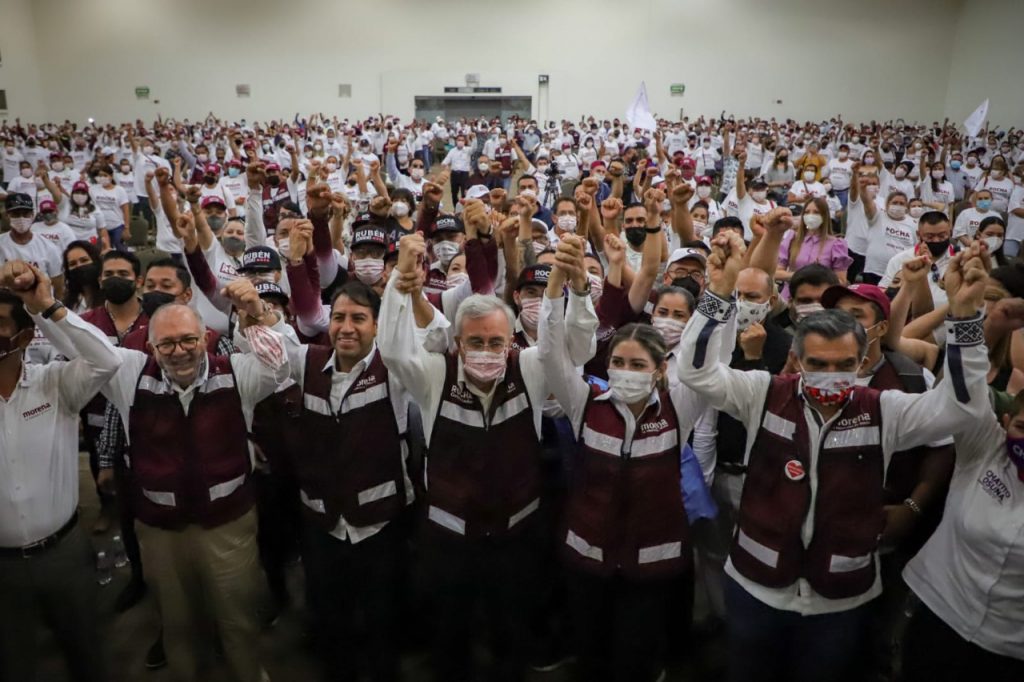 “Aquí están nuestras y nuestros compañeros en los cuales depositamos toda la confianza; hemos sembrado, hemos estado cultivando, y el 6 de junio vamos a cosechar; tenemos encargado a este ejército muy digno de hombres y mujeres para que nos cuiden el producto de nuestro trabajo, no solo de la campaña, del trabajo que se ha venido acumulando en todo lo que va de la transformación de México a cargo del presidente Andrés Manuel López Obrador”, manifestó ante un auditorio vibrante y eufórico.
