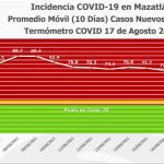 Agregó que con esta cifra, Mazatlán se mantiene en color rojo del Semáforo Epidemiológico Estatal y hoy cumple ocho días en cuarto lugar en Sinaloa, mientras que Culiacán tiene este día 561 casos activos, Ahome 469 y Guasave 274.