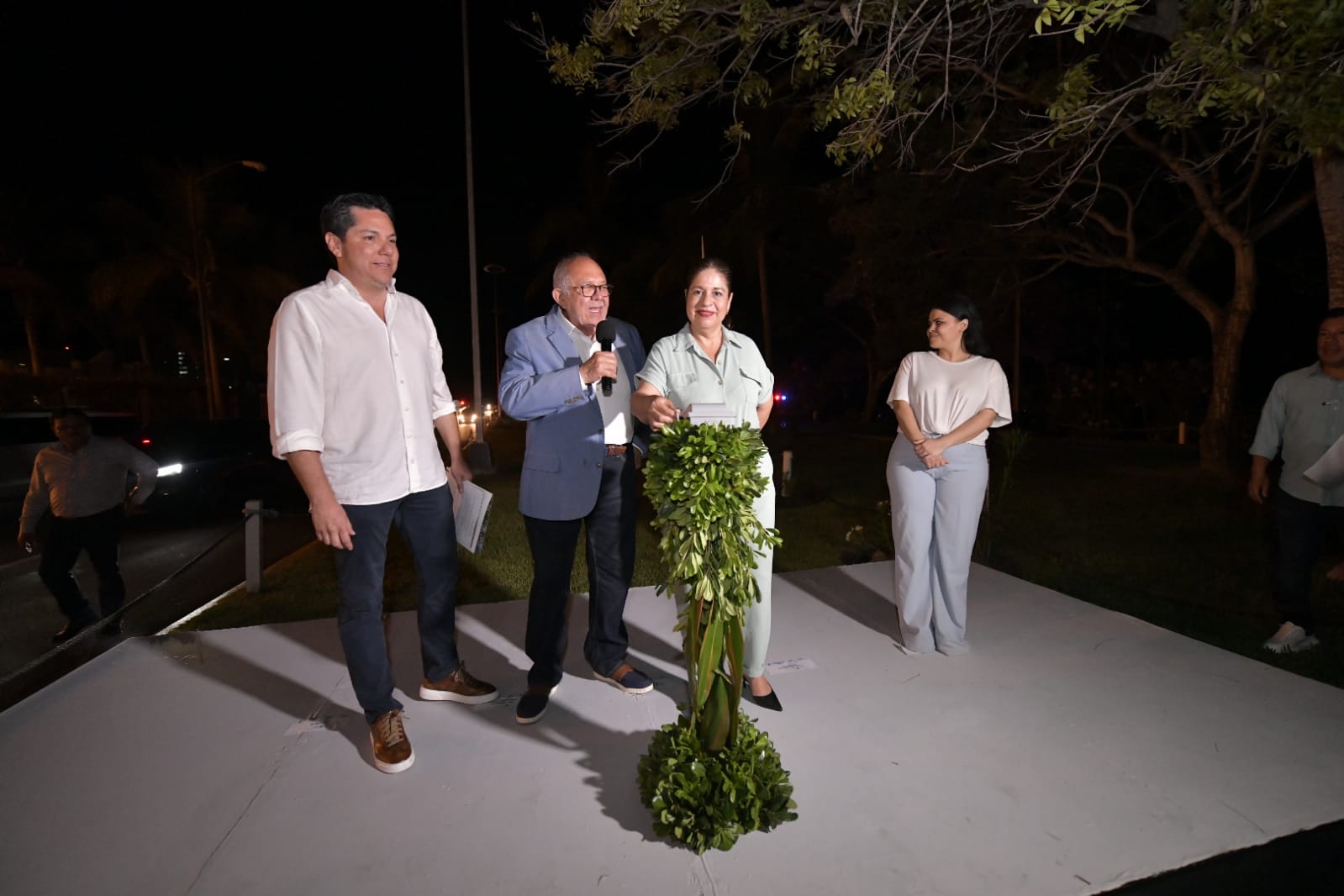 El Alcalde Luis Guillermo Benitez Torres, estuvo acompañado de la Síndica Procuradora, Claudia Magdalena Cárdenas Díaz, quien encendió de manera oficial las 102 lámparas que se colocaron para iluminar la vialidad Sábalo-Cerritos.